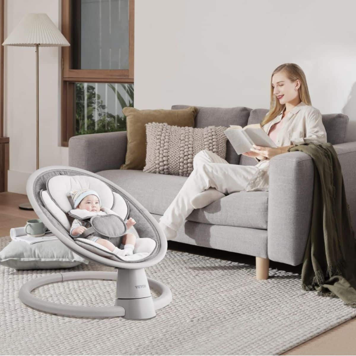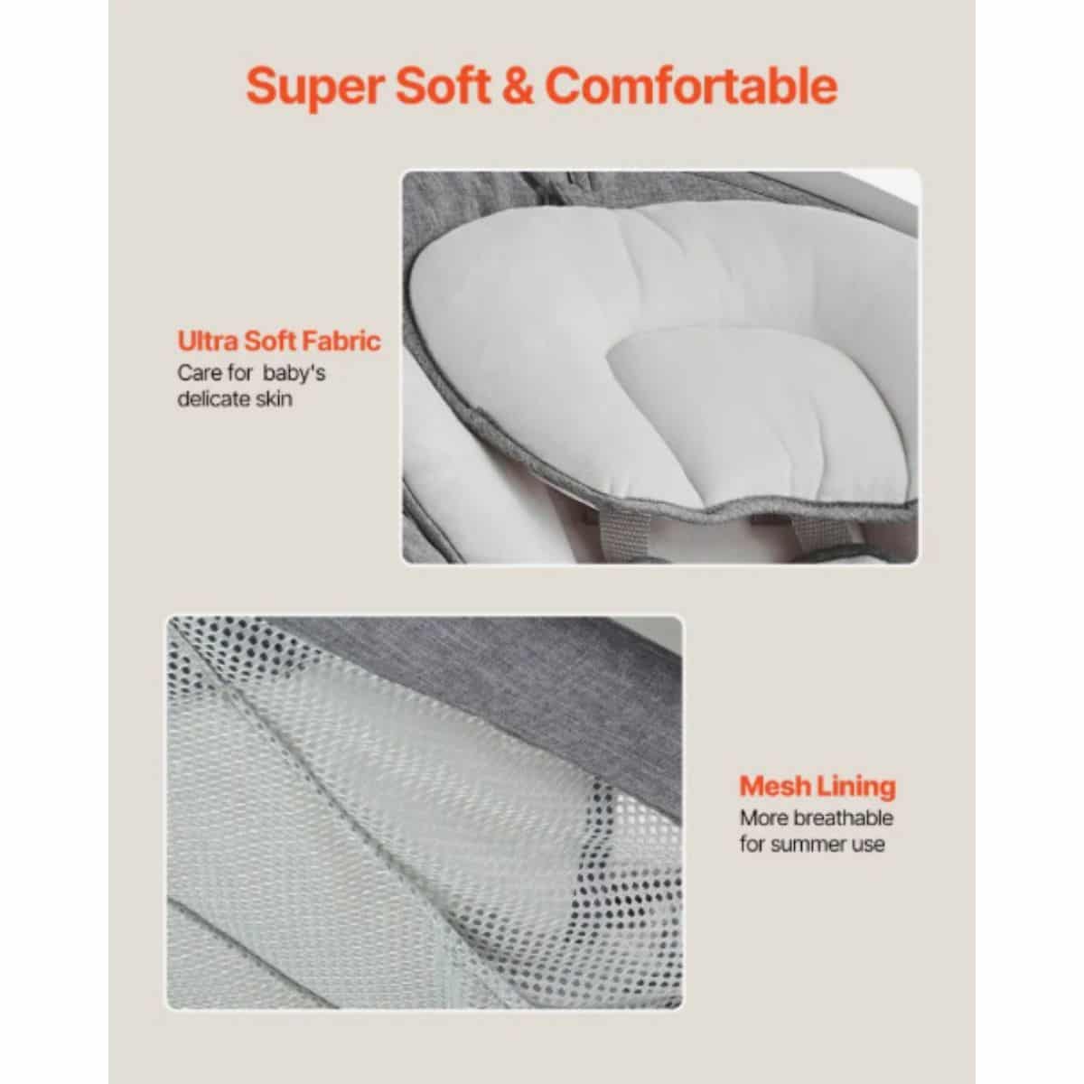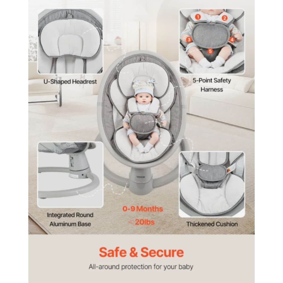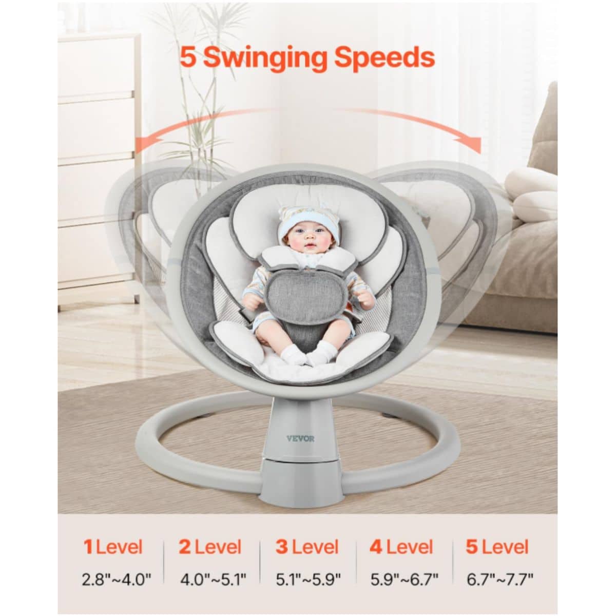 This portable infant swing by Vevor offers 5 gentle speeds and Bluetooth music to soothe your baby. Designed with safety and comfort in mind, perfect for babies up to 20 lbs.
