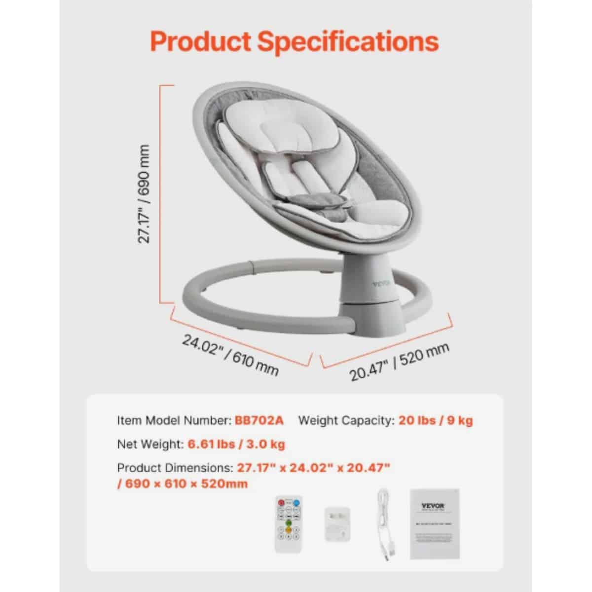 Portable Infant Swing – Vevor 5-Speed with Remote
