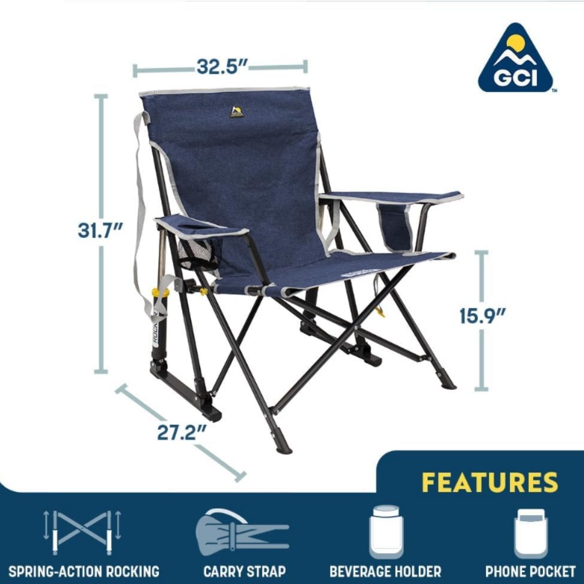 This portable rocking chair by GCI Outdoor offers comfort with its breathable mesh and easy portability. Perfect for camping, sports, or backyard fun.
