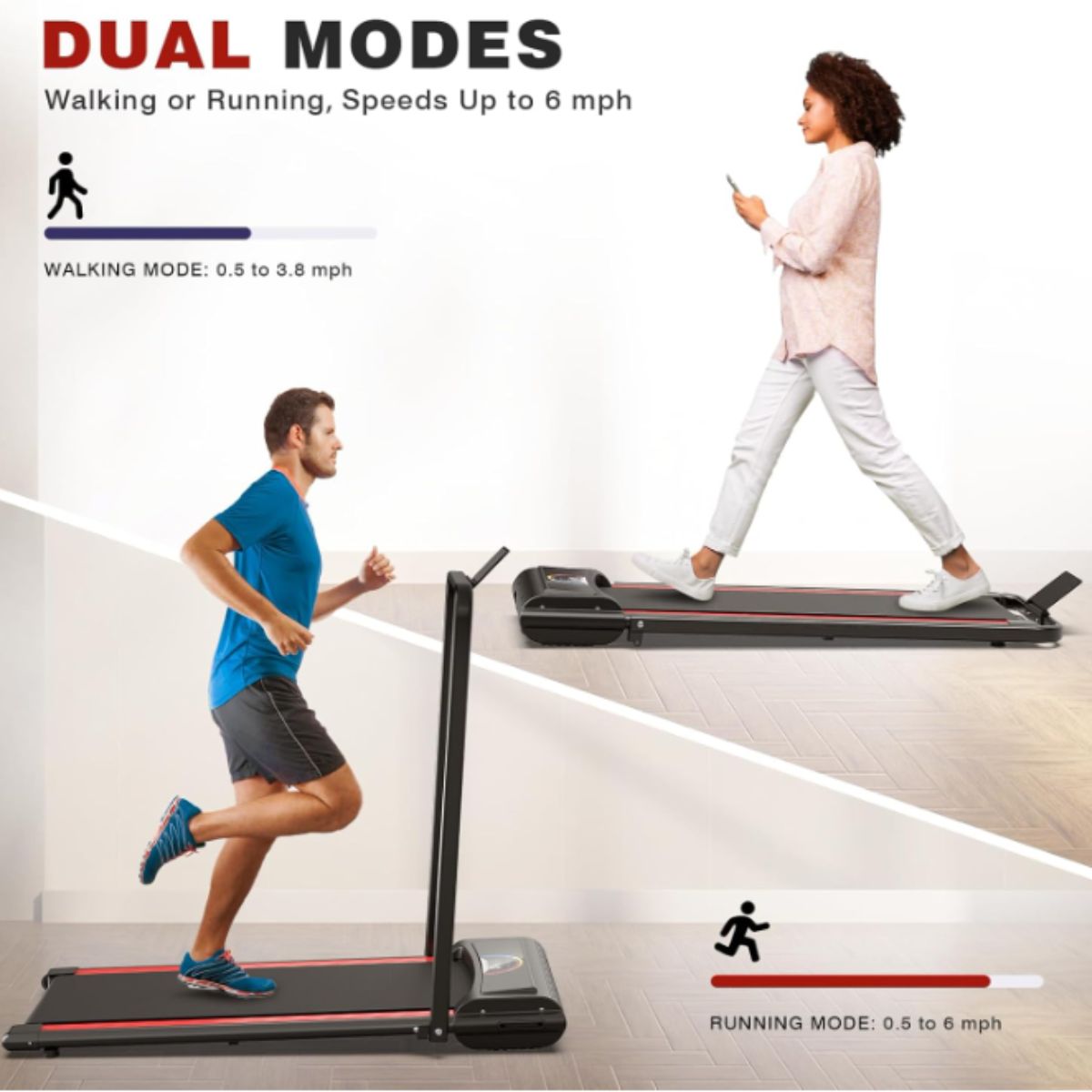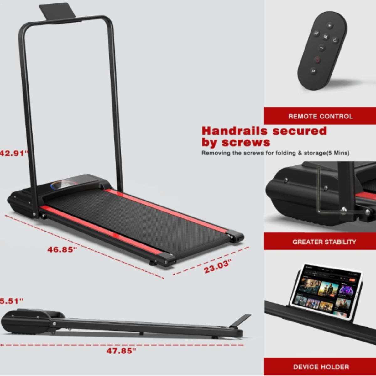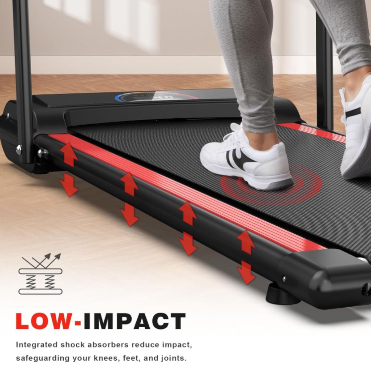 The portable treadmill by LIVIVOX offers a quiet 2.5 HP motor with easy remote control. Ideal for home or office use in small spaces.