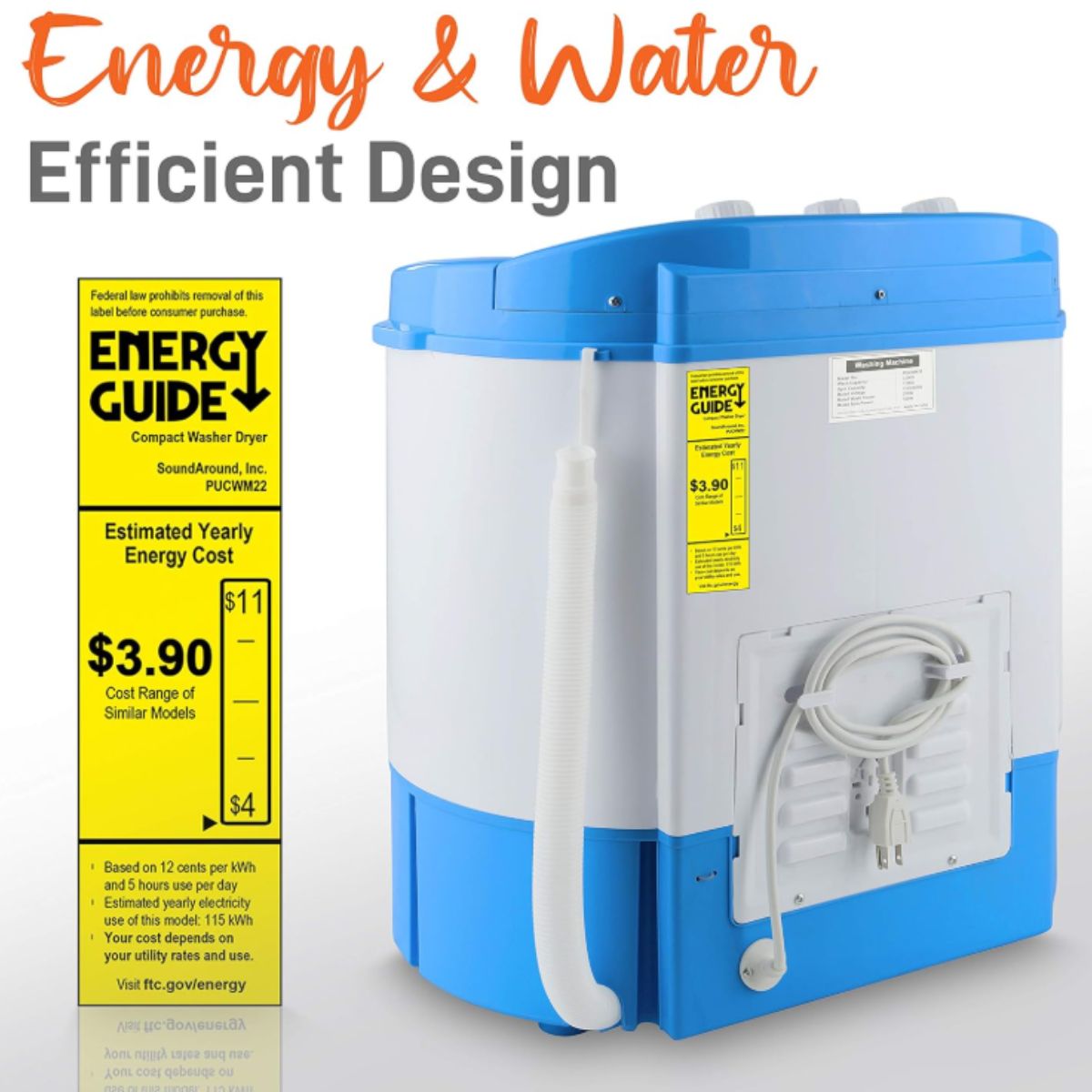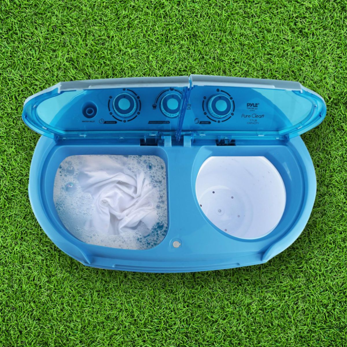 The portable washing machine by Pyle is a compact 2-in-1 washer and spin dryer that’s perfect for apartments and RVs. Enjoy energy-efficient laundry with easy controls.