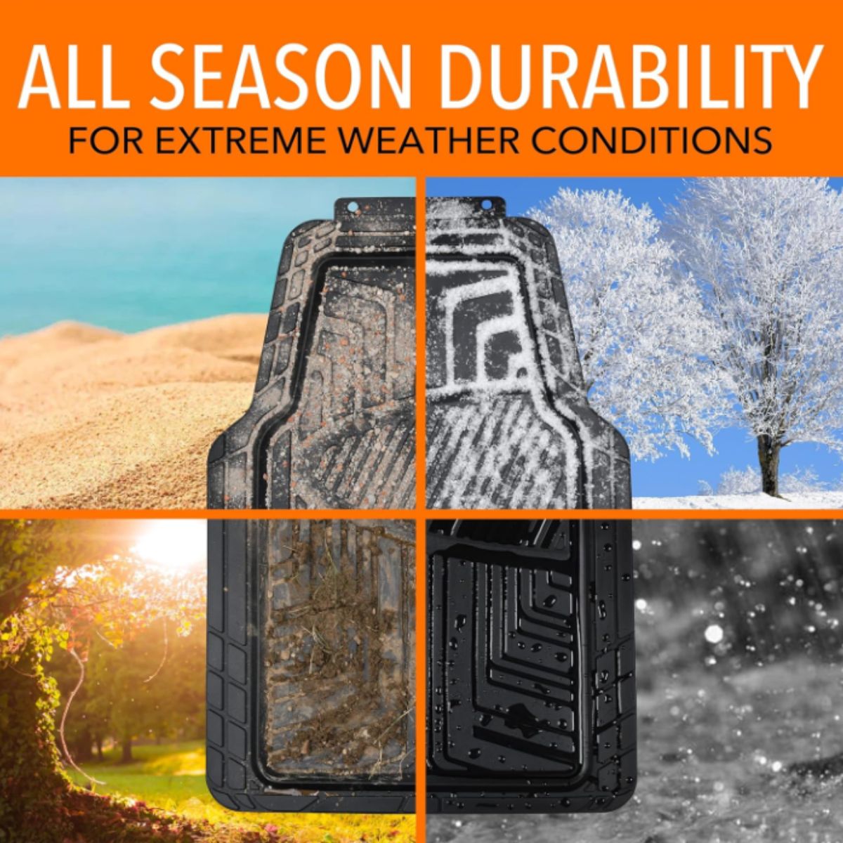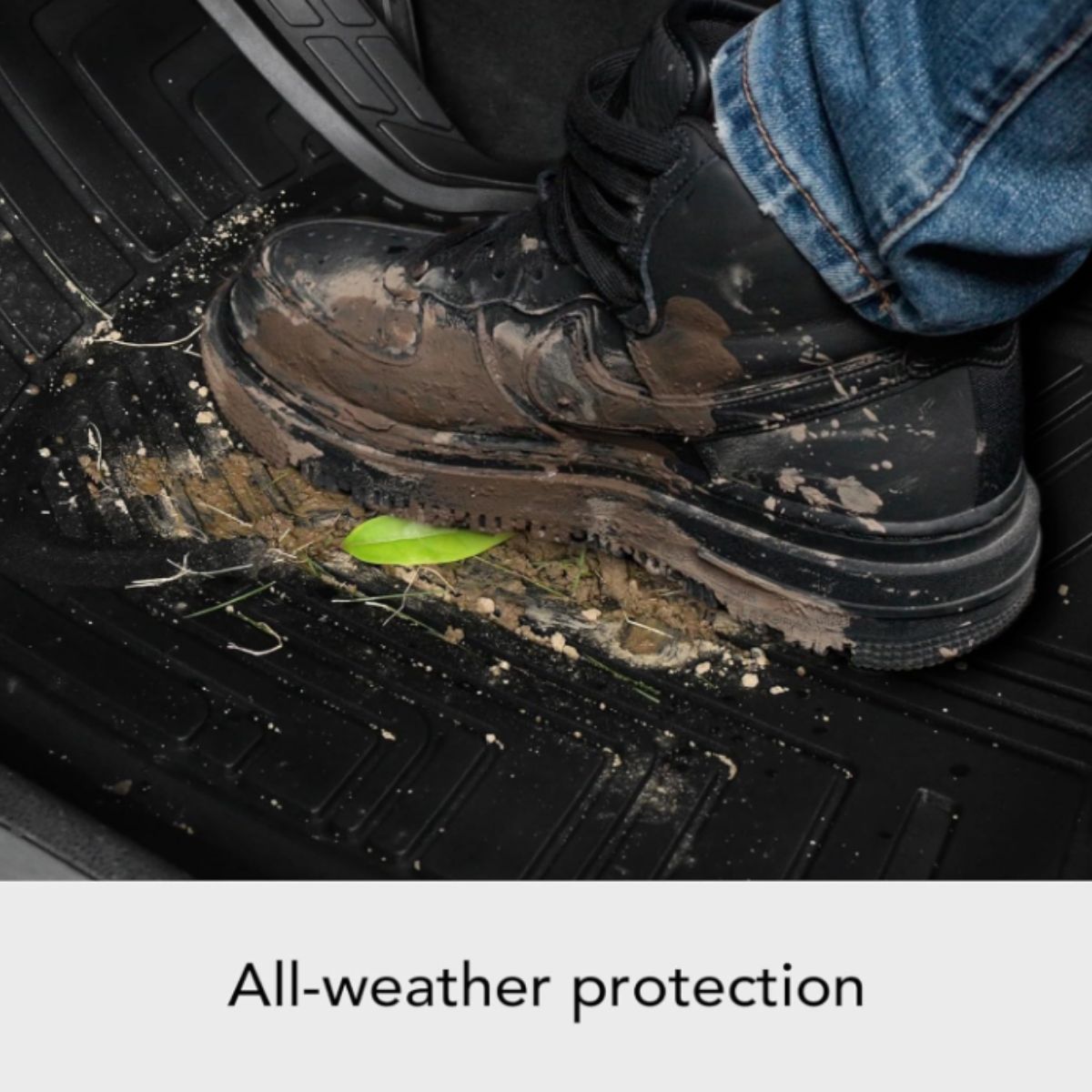 Premium rubber floor mat by Amazon Basics offers durable all-weather protection for cars, SUVs, and trucks. Universal fit with trim-to-fit edges.