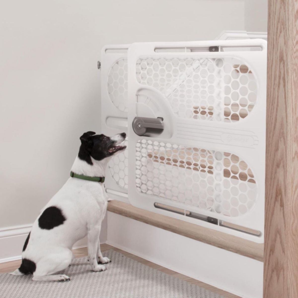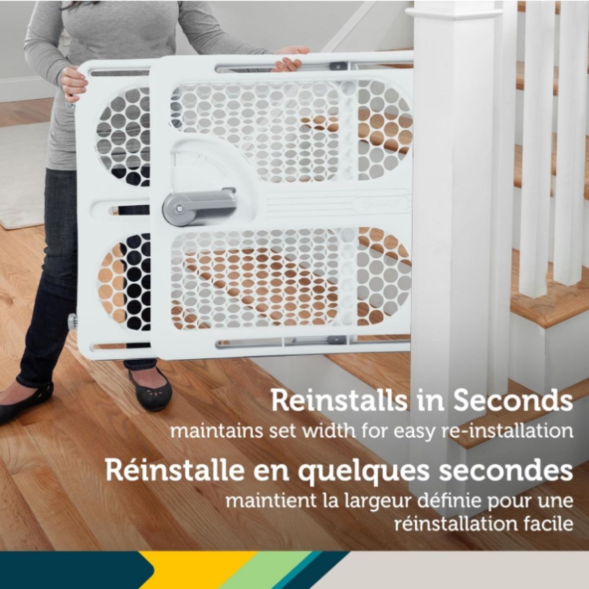 Pressure mount security gate by Safety 1St offers easy installation and one-hand locking for secure adult-only access. Perfect for home safety.
