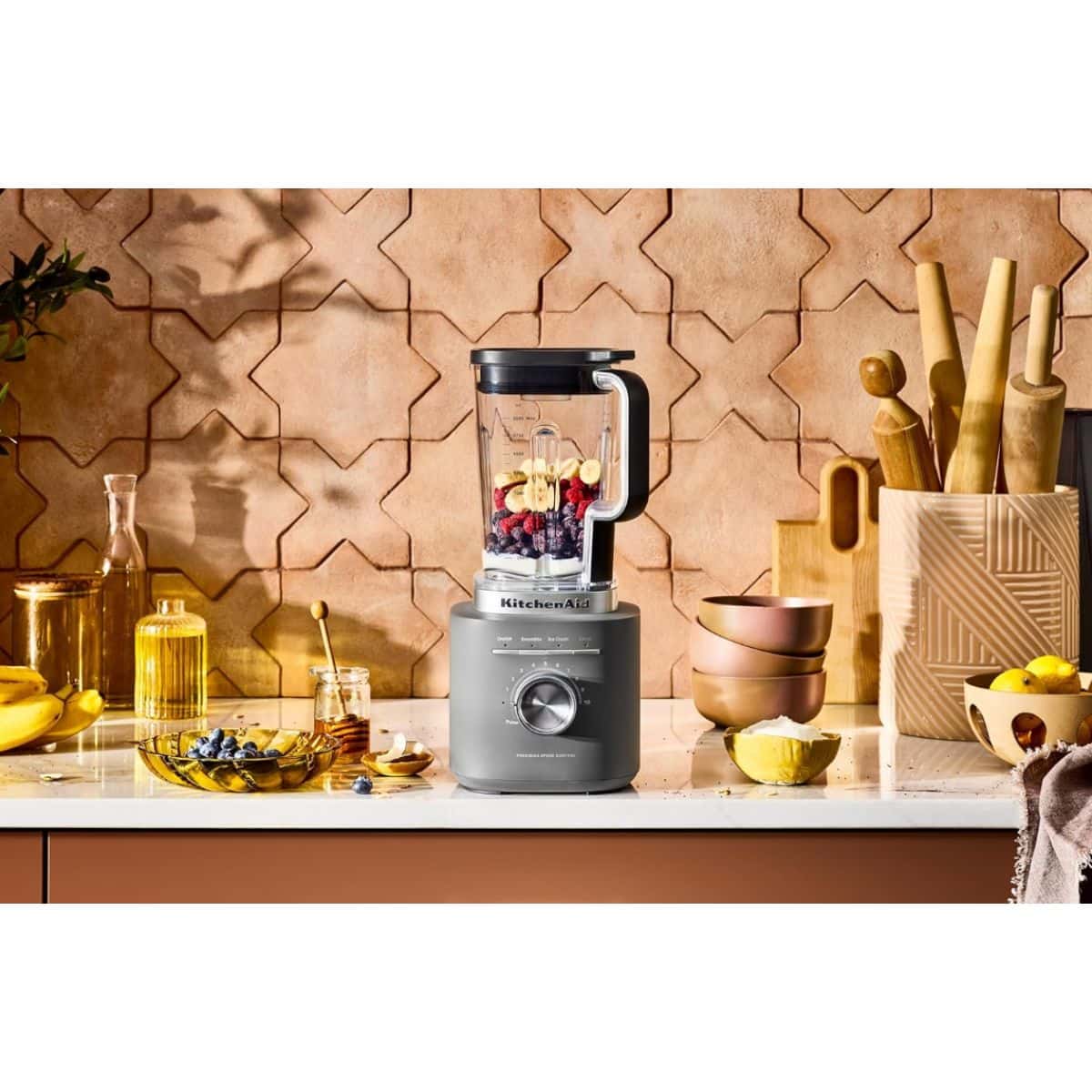The pure power blender by KitchenAid offers precise blends with its variable speed control. Perfect for smoothies, salsas, and soups with ease.