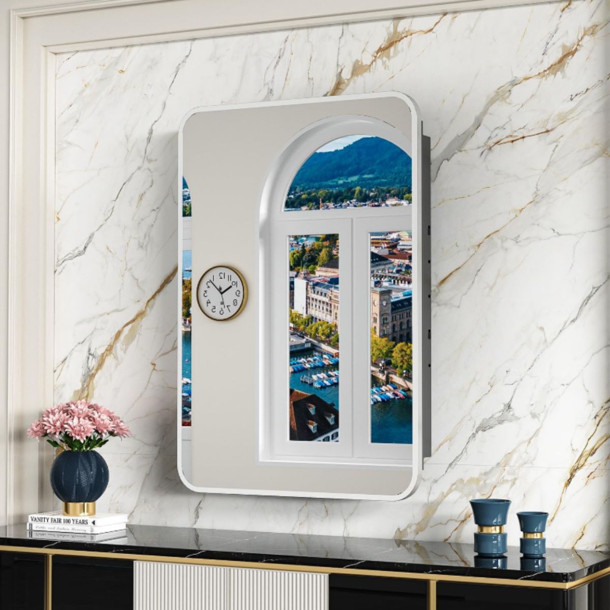 Recessed medicine cabinet by ACEMIRO offers durable brushed silver design and adjustable shelves for personalized bathroom storage and style.