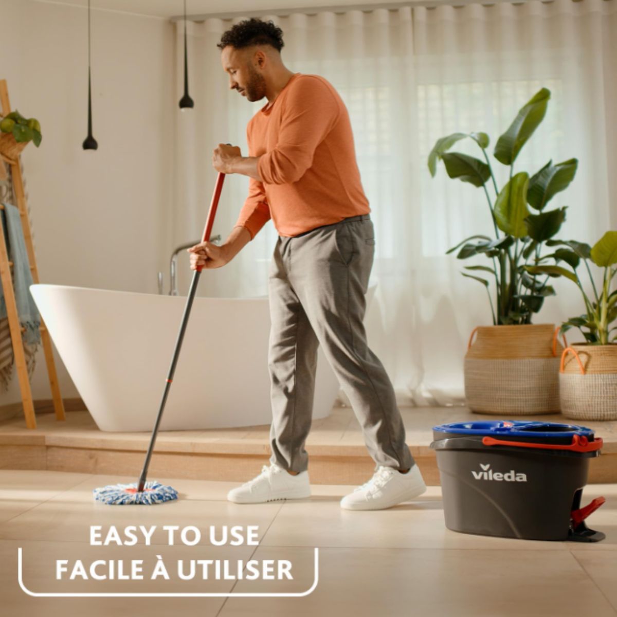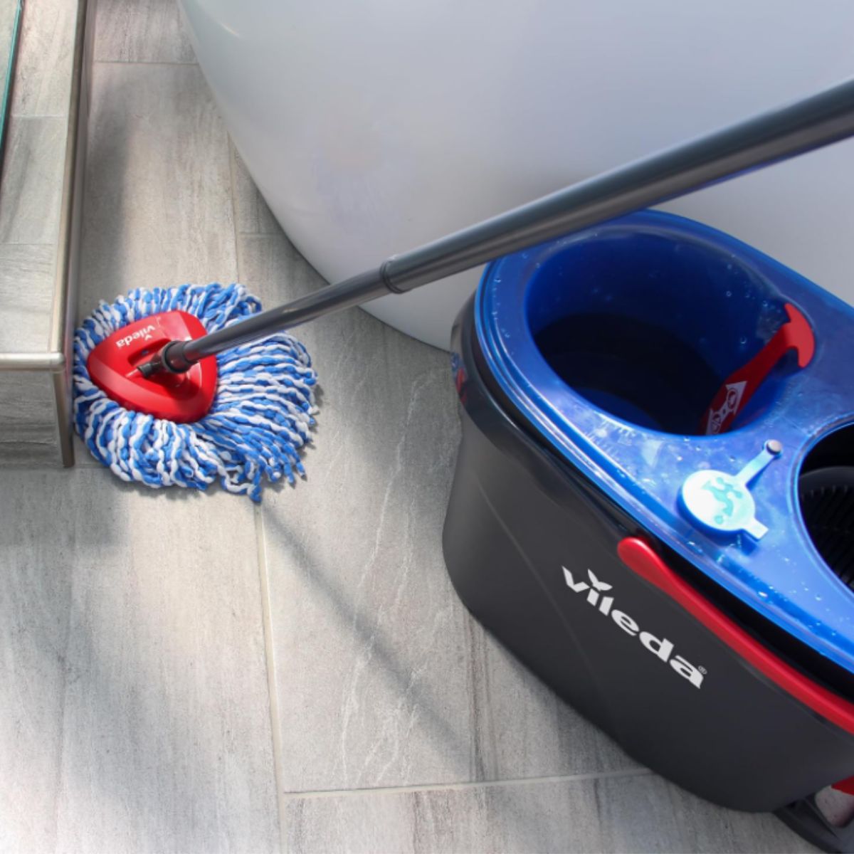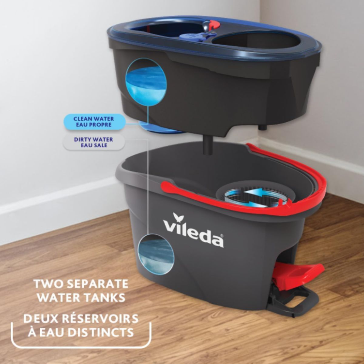 The rinseclean spin mop by Vileda offers hands-free wringing and dual-chamber bucket technology for efficient cleaning. Perfect for Canadian homes.