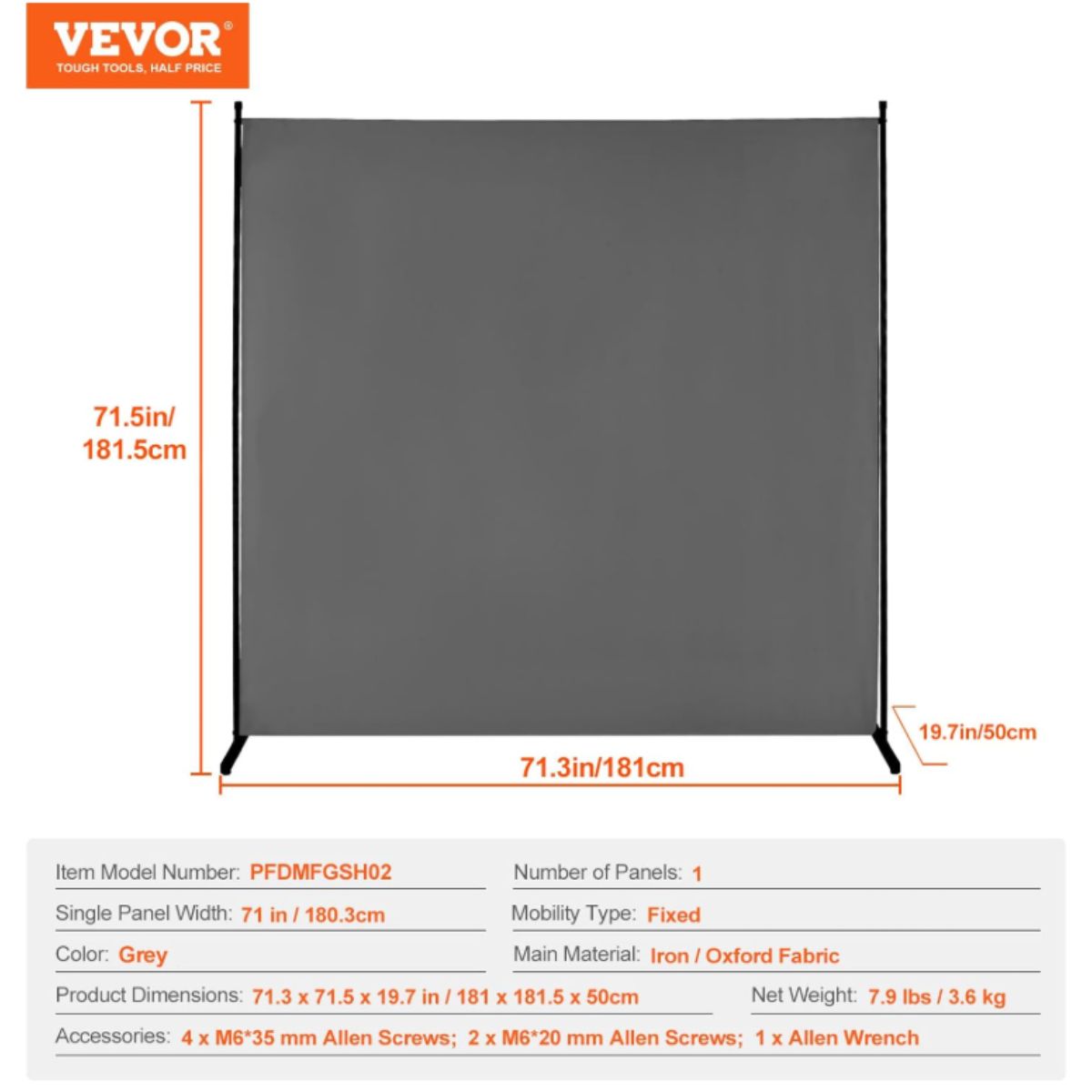Room Divider Panel – VEVOR Grey 6FT