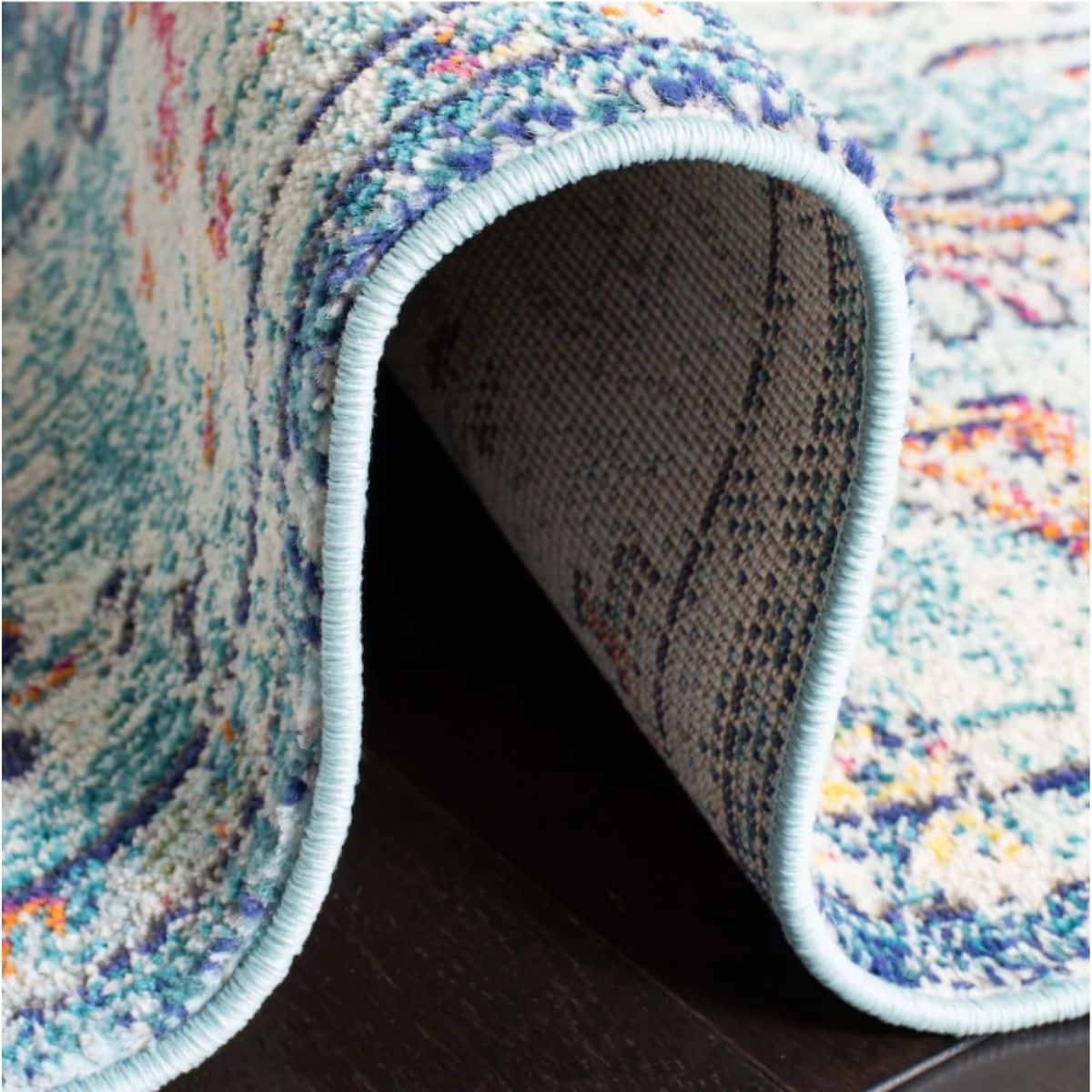 Elevate your home decor with the Safavieh Madison Milka Navy/Light Blue Area Rug. Power loomed for durability and easy care, it adds a stylish touch to any room.