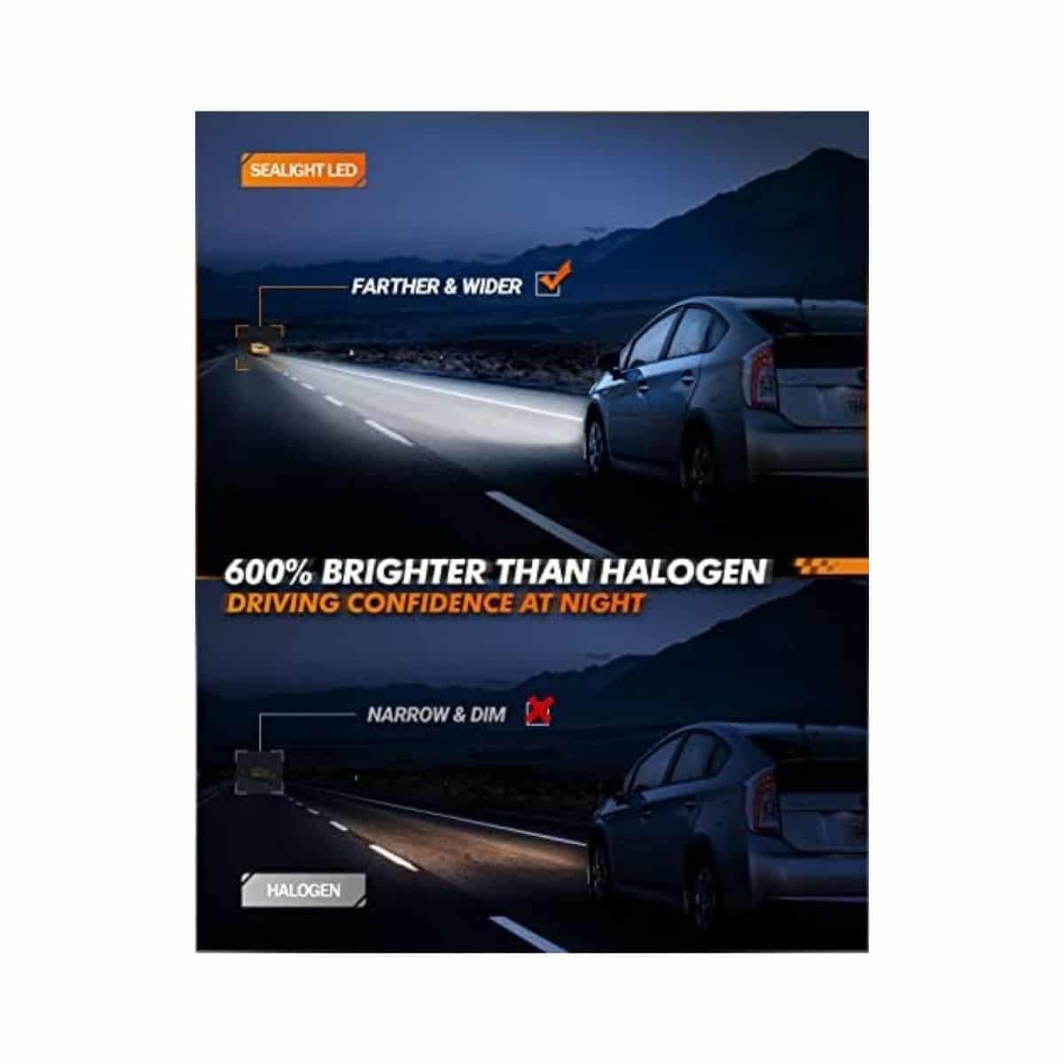 SEALIGHT H11 H8 H9 LED Headlight Bulbs, 30000 Lumens Super Bright LED Bulbs, Fanless Design, 6000K Cool White, Non-Polarity, Plug and Play, Pack of 2