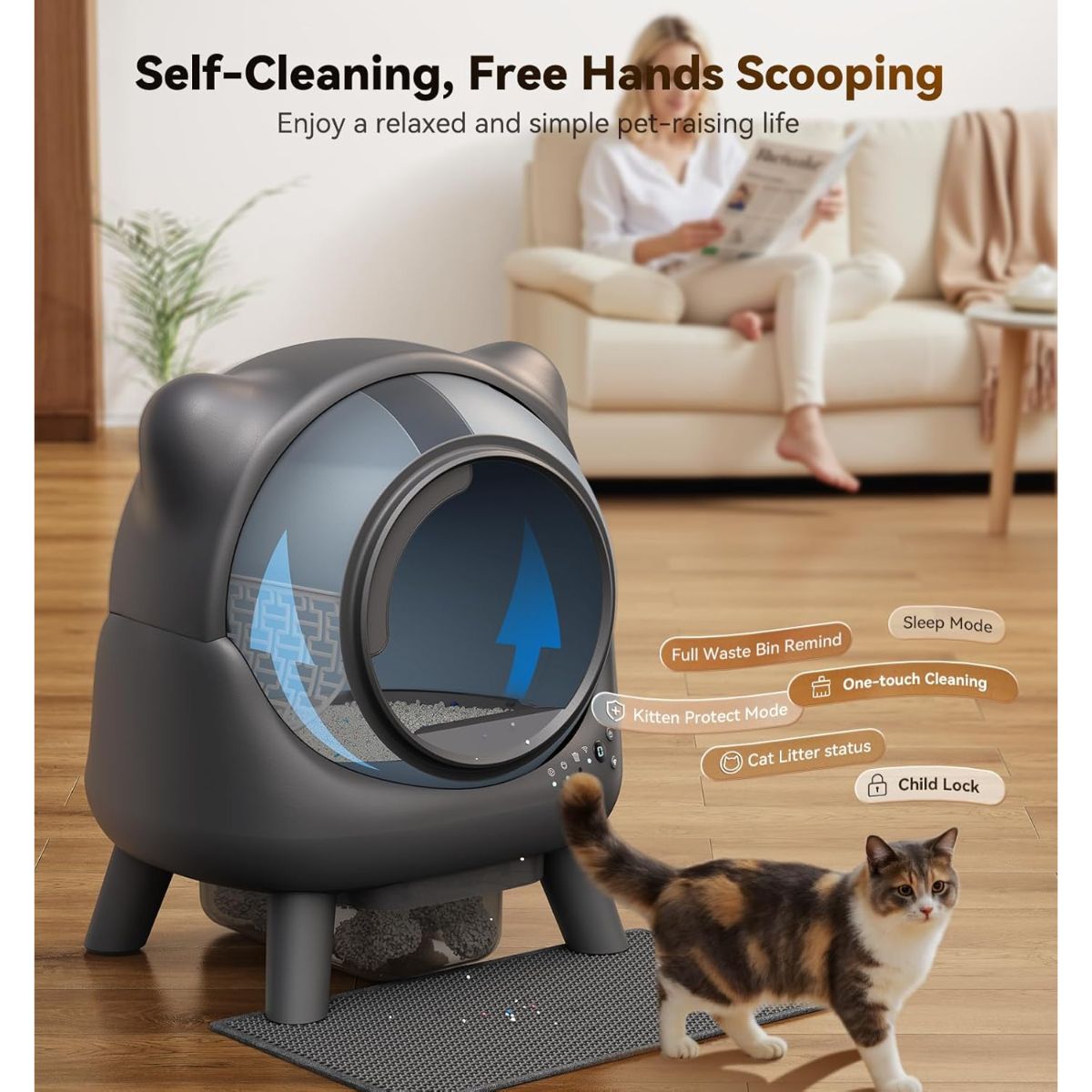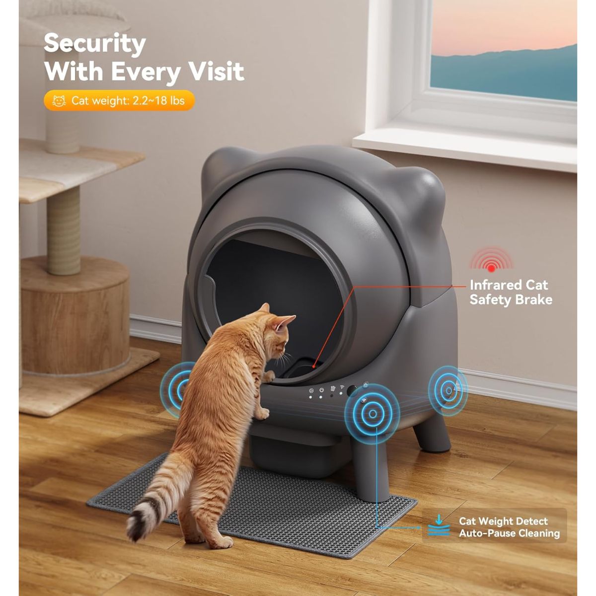 This self cleaning litter box provides hassle-free maintenance for multi-cat households. It features odor control and safety sensors for your pet’s comfort.