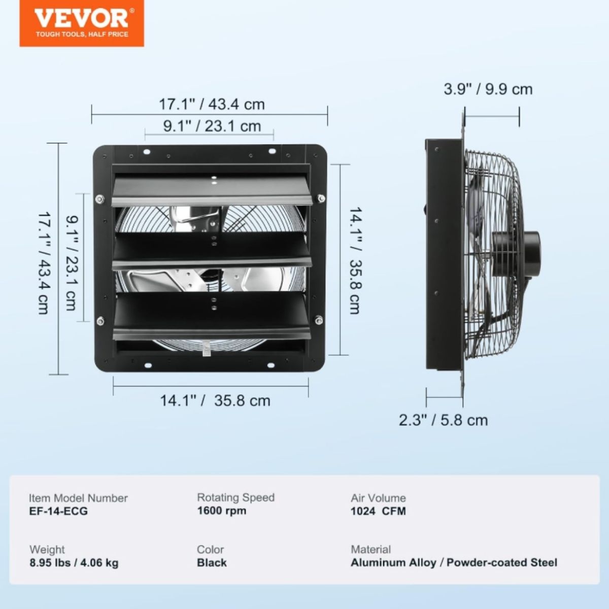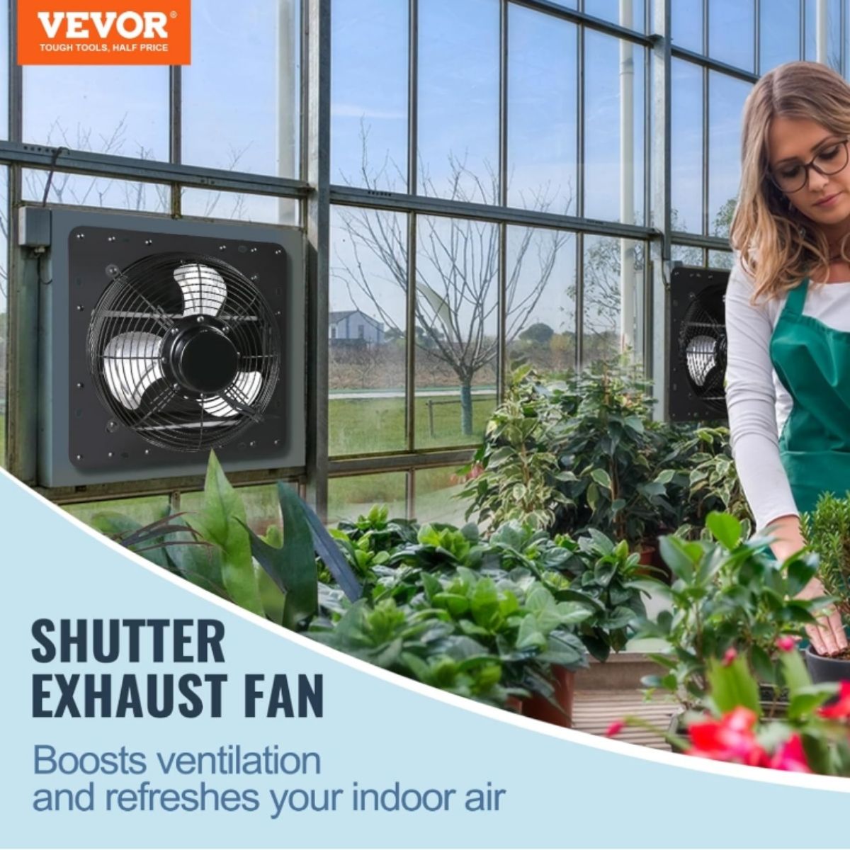 The shutter exhaust fan by Vevor offers powerful ventilation with 1513 CFM airflow. Ideal for greenhouses, garages, and sheds to keep air fresh and cool.