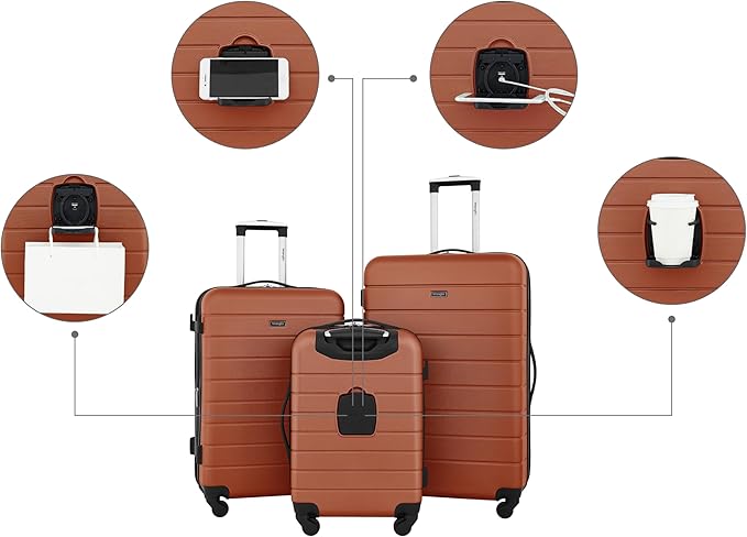 The smart luggage set offers convenience with a USB port and cup holder. Perfect for hassle-free travel with expandable capacity and smooth spinner wheels.