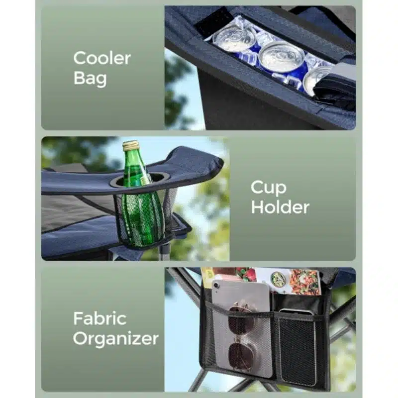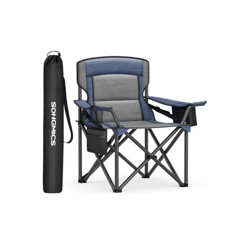SONGMICS Oversized Lumbar Support Camping Chair, Heavy-Duty Outdoor Folding Chair Comfortable, Padded, Glamping, Cooler Bag, Weight Capacity 450 lb, Harbor Blue UGCB066Q01