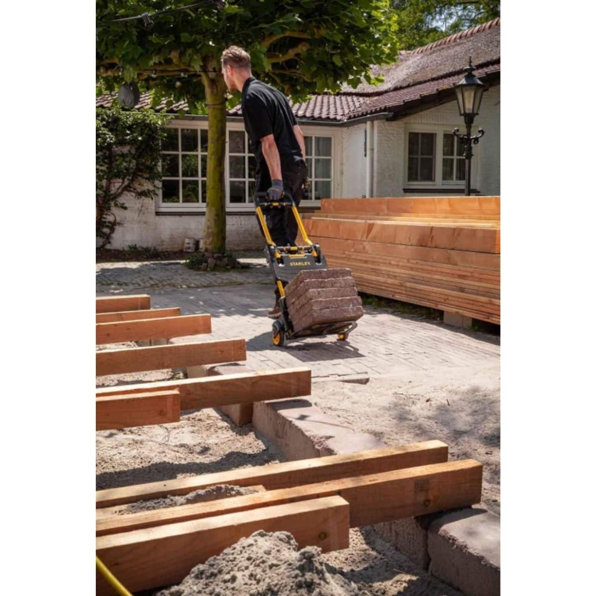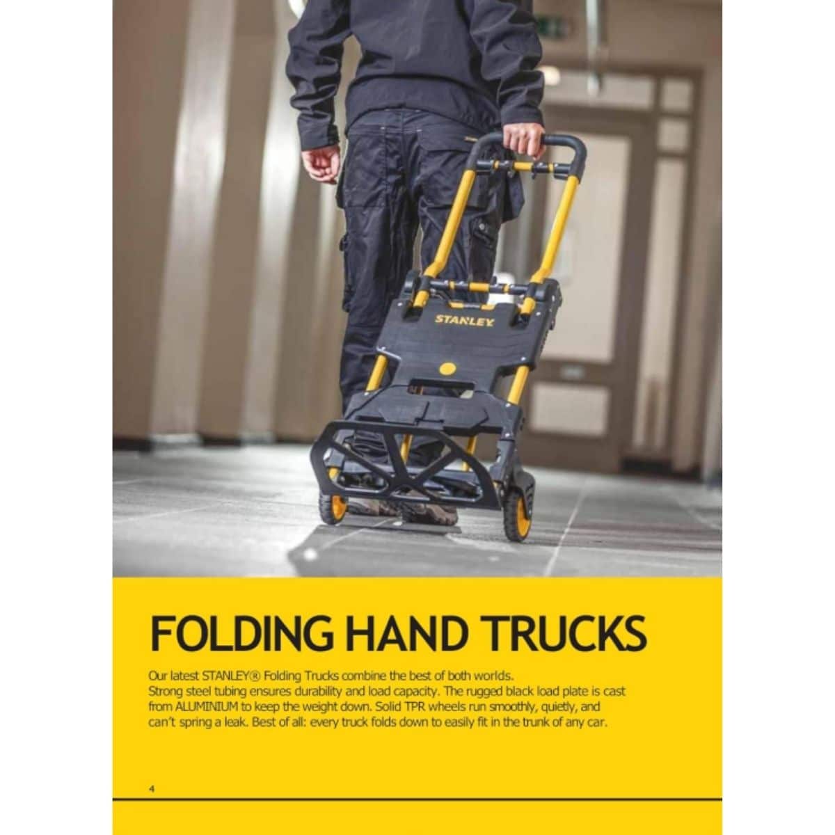 The Stanley Folding Hand Truck in yellow is your go-to for moving heavy items. Its compact and foldable design makes it easy to store and use anytime.