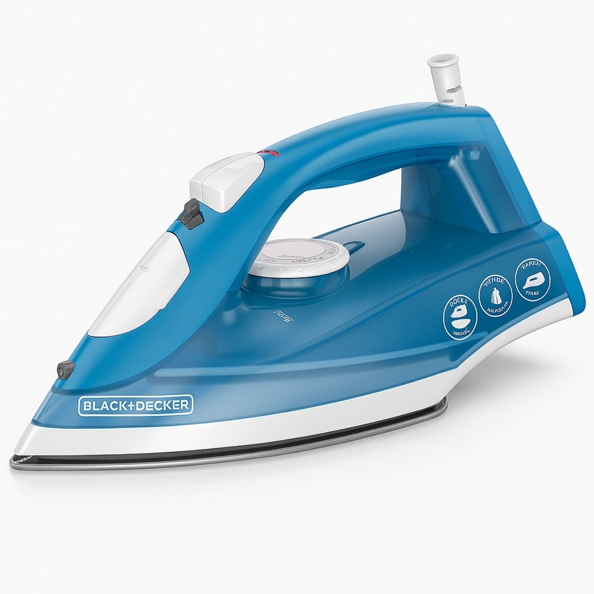 This steam iron by BLACK+DECKER offers powerful performance with a 1200-watt heating element and TrueGlide premium soleplate for easy wrinkle removal. Perfect for home or travel.