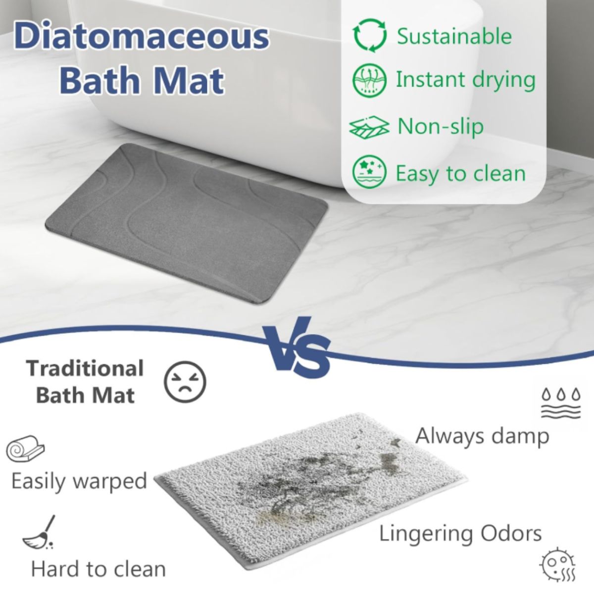 Stone bath mat by Ceecysaa offers fast moisture absorption and safety with a non-slip design. Ideal for bathroom and kitchen use with easy cleaning.