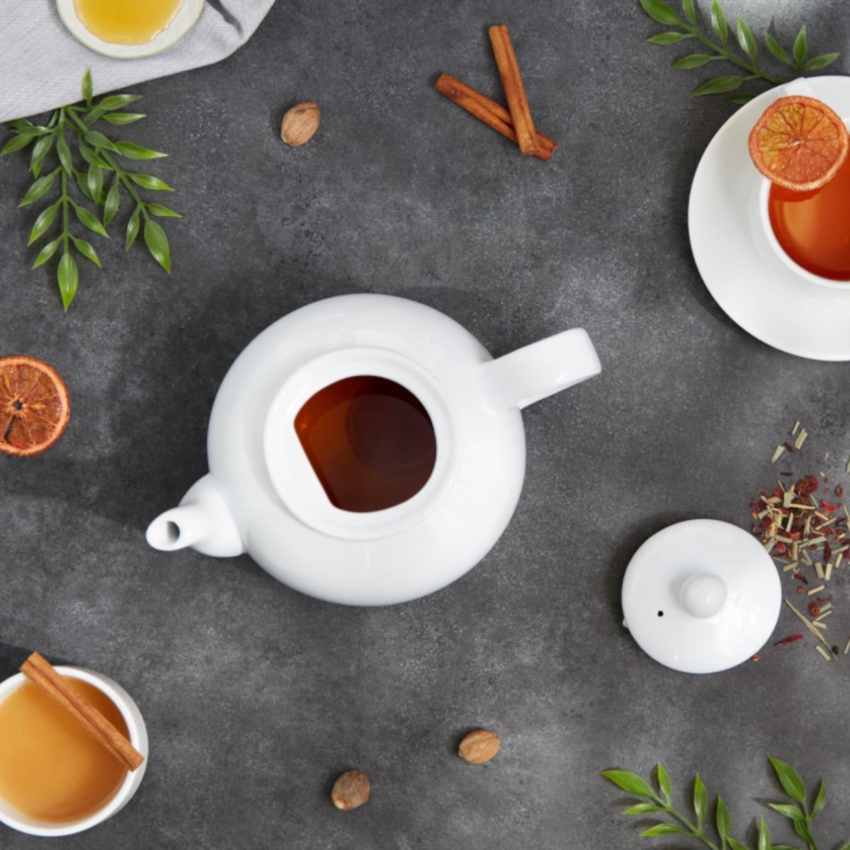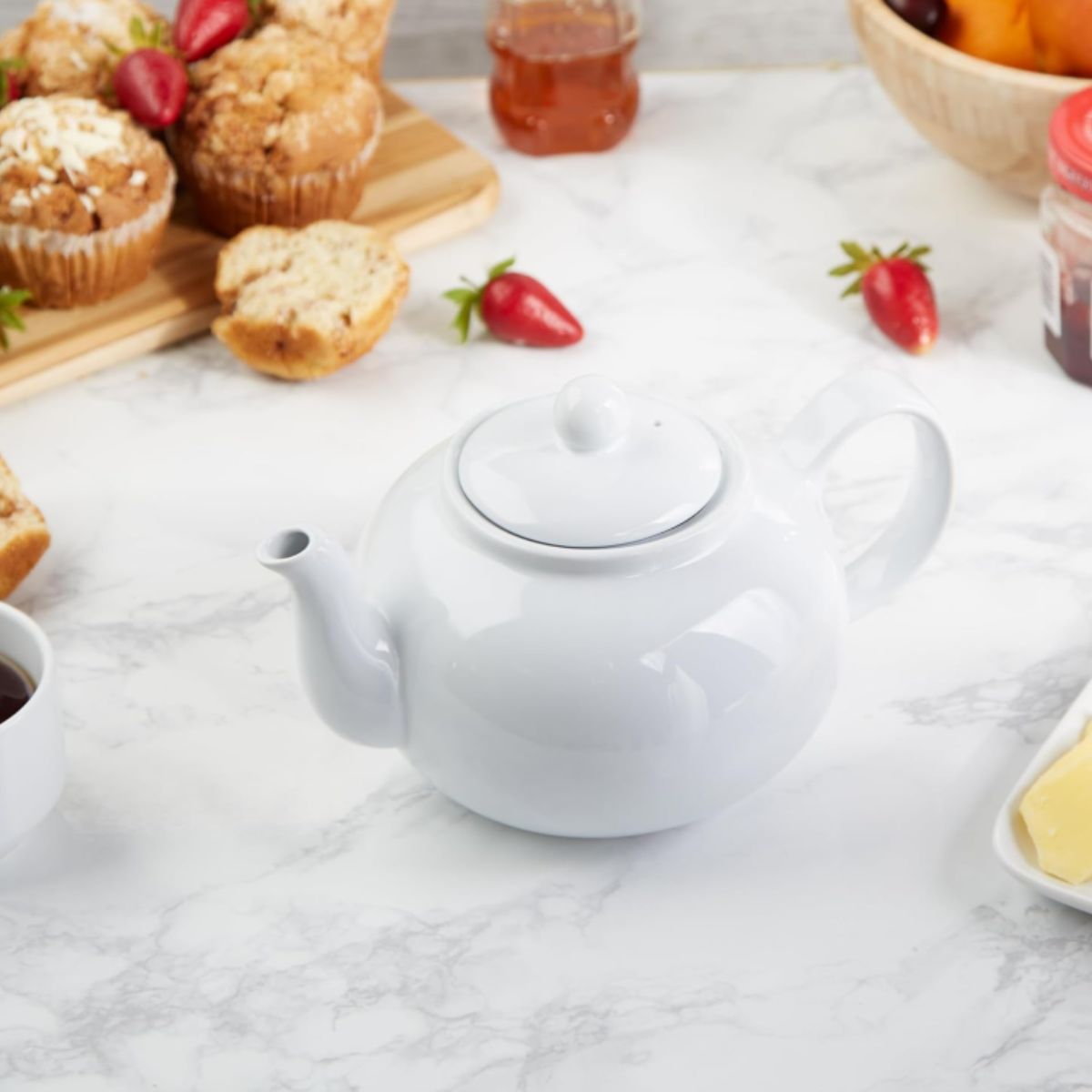 The stoneware teapot by Rsvp offers a durable and stylish option for your tea time. Its 16 oz capacity is perfect for small groups.