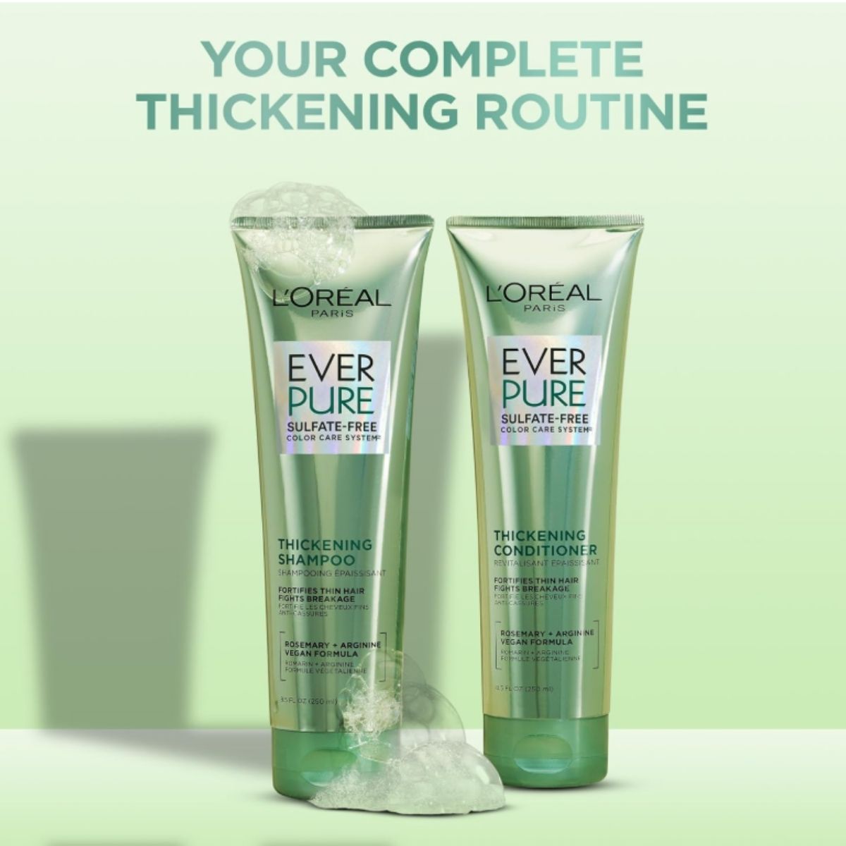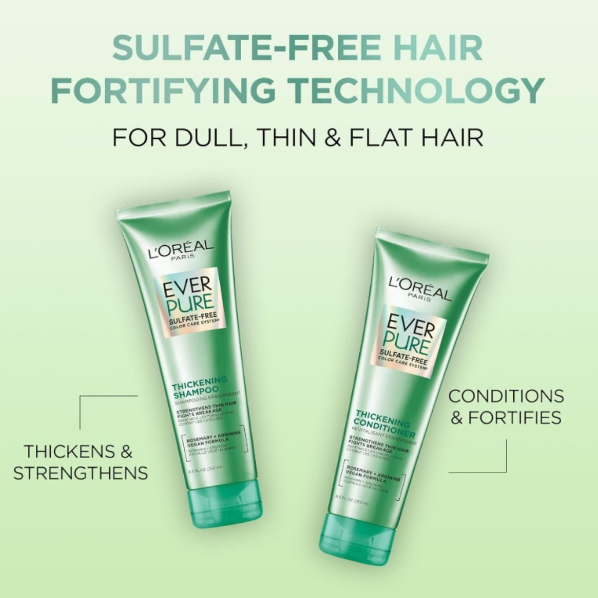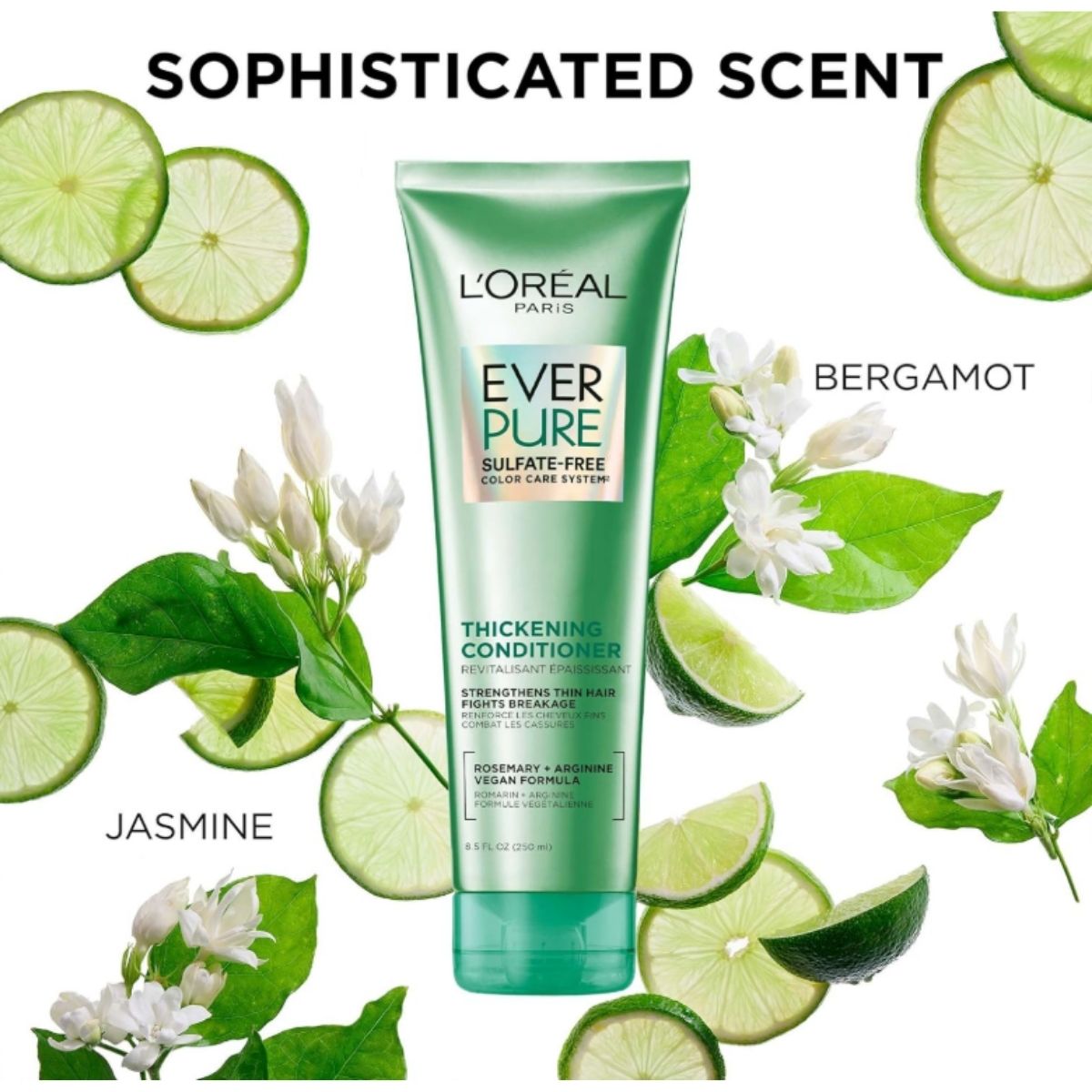 Sulfate free conditioner from L’Oreal Paris fortifies thin, fragile, colour-treated hair. This vegan formula with rosemary and arginine thickens and protects.