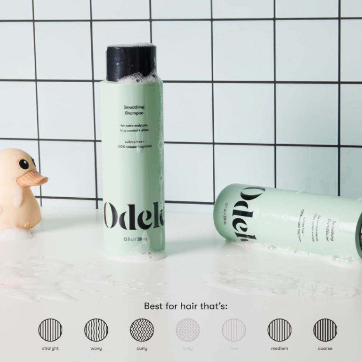 Sulfate free shampoo and conditioner set by Smoothing offers moisture and frizz control for all hair types. Enjoy shiny, smooth hair with every wash.