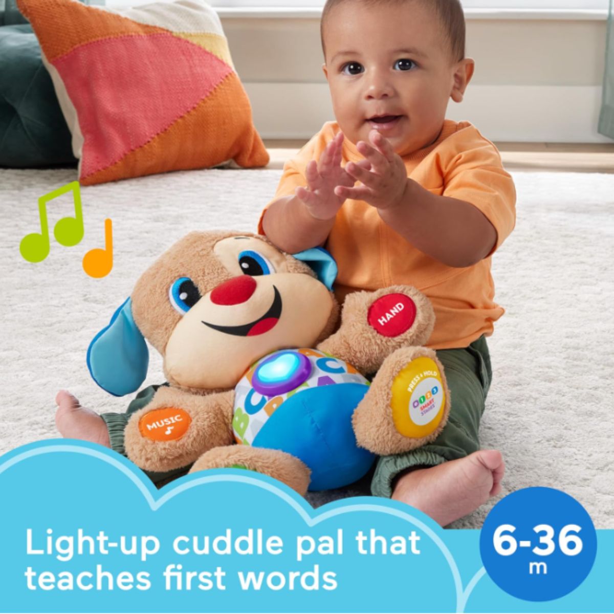 Toddler toy puppy by Fisher-Price offers musical fun and learning with engaging lights. Perfect for babies and toddlers to explore and enjoy.