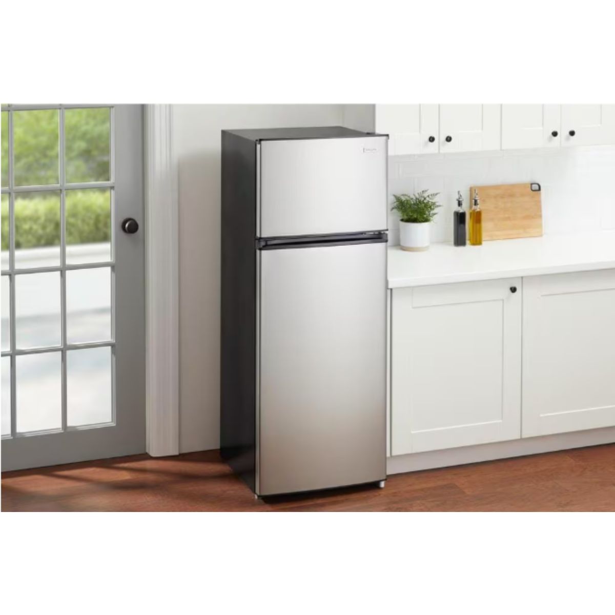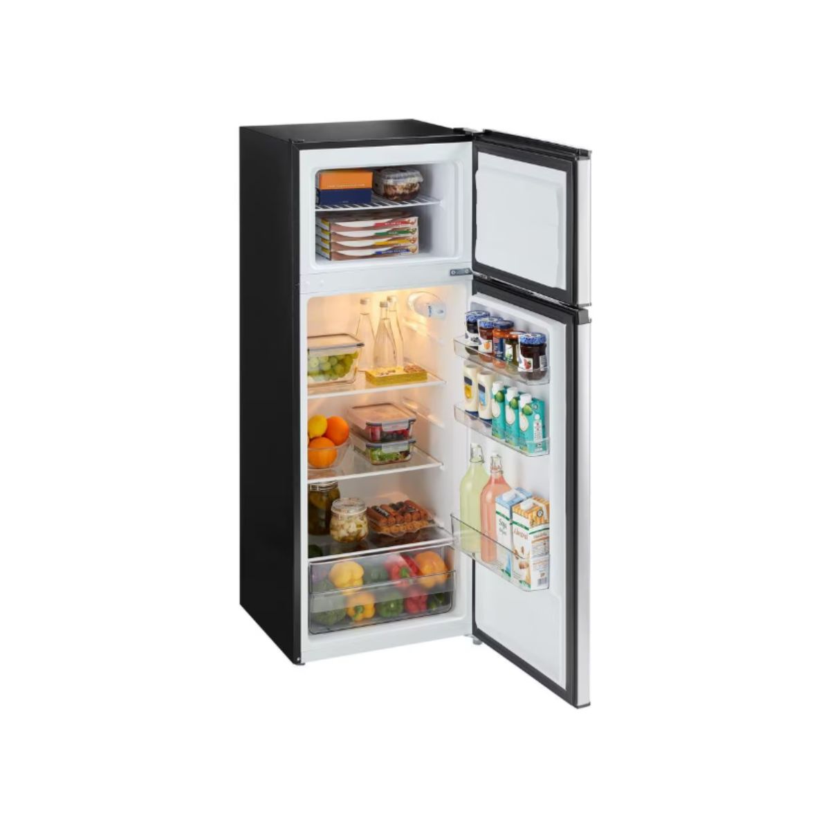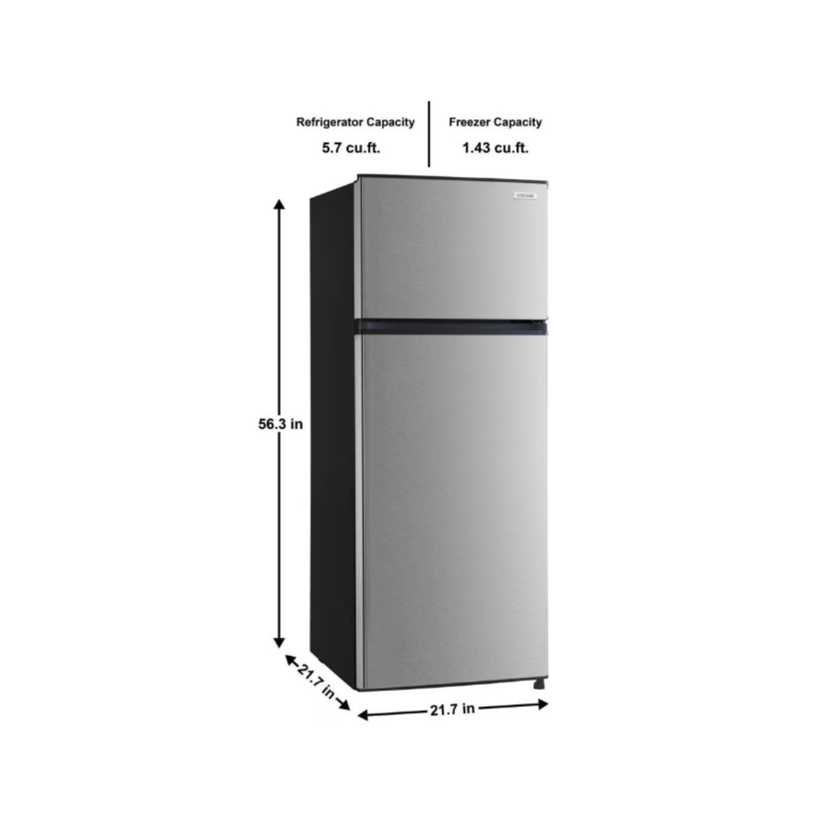 The top freezer refrigerator by Vissani offers 7.1 cu. ft. of storage with adjustable shelves and a stainless steel finish. Perfect for Canadian kitchens needing reliable freshness.