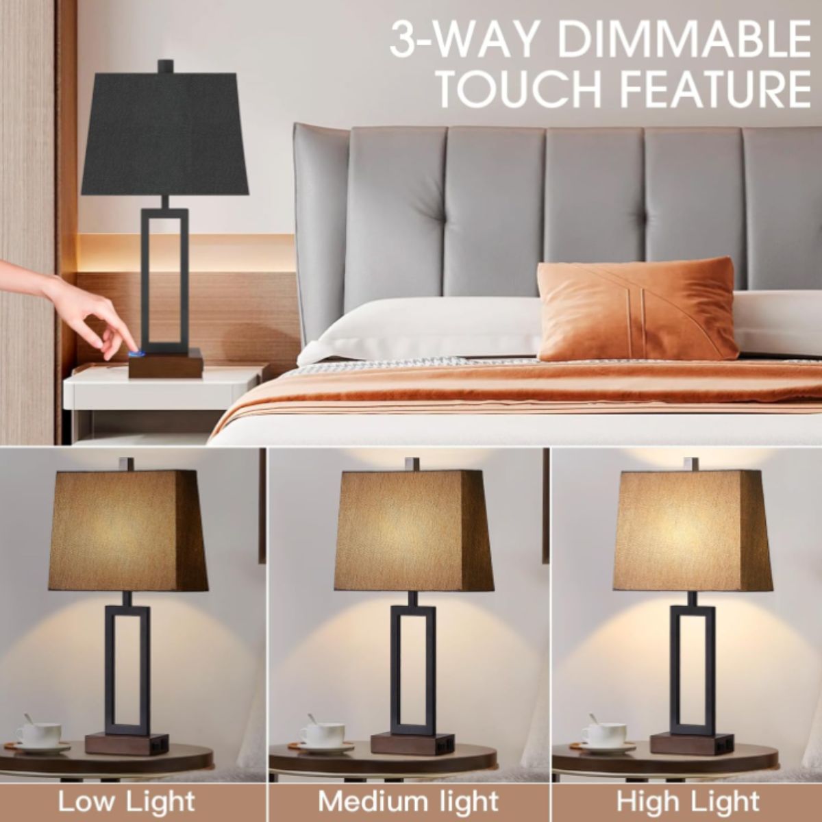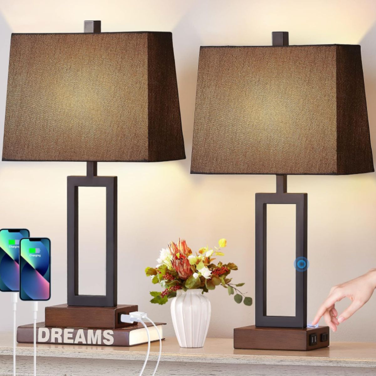 Touch control table lamps by Lolikit offer modern style with USB charging ports. Perfect for bedrooms or offices needing versatile lighting solutions.