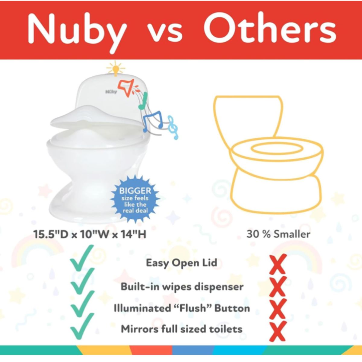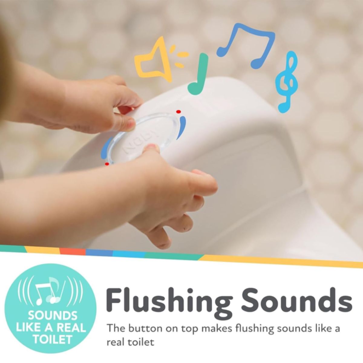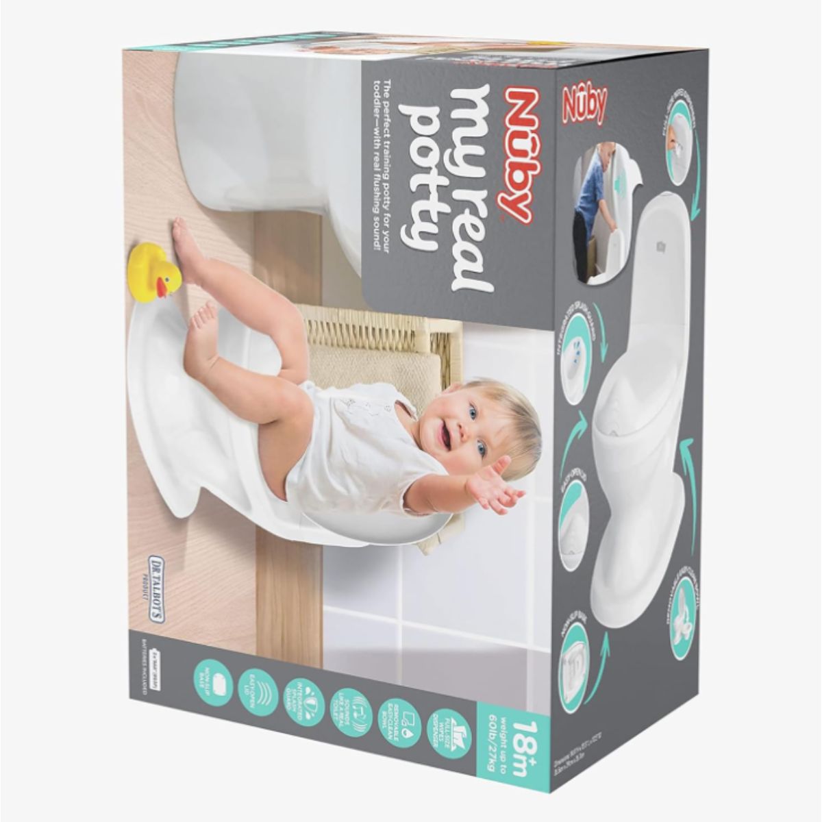 Training potty by Nuby is perfect for toddlers learning toilet habits. It features real toilet sounds and a removable easy-clean bowl for convenience.