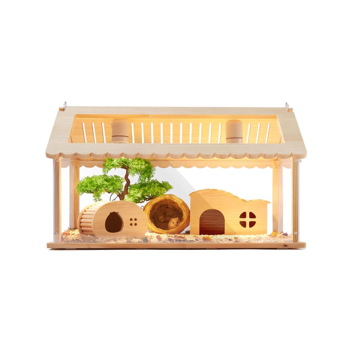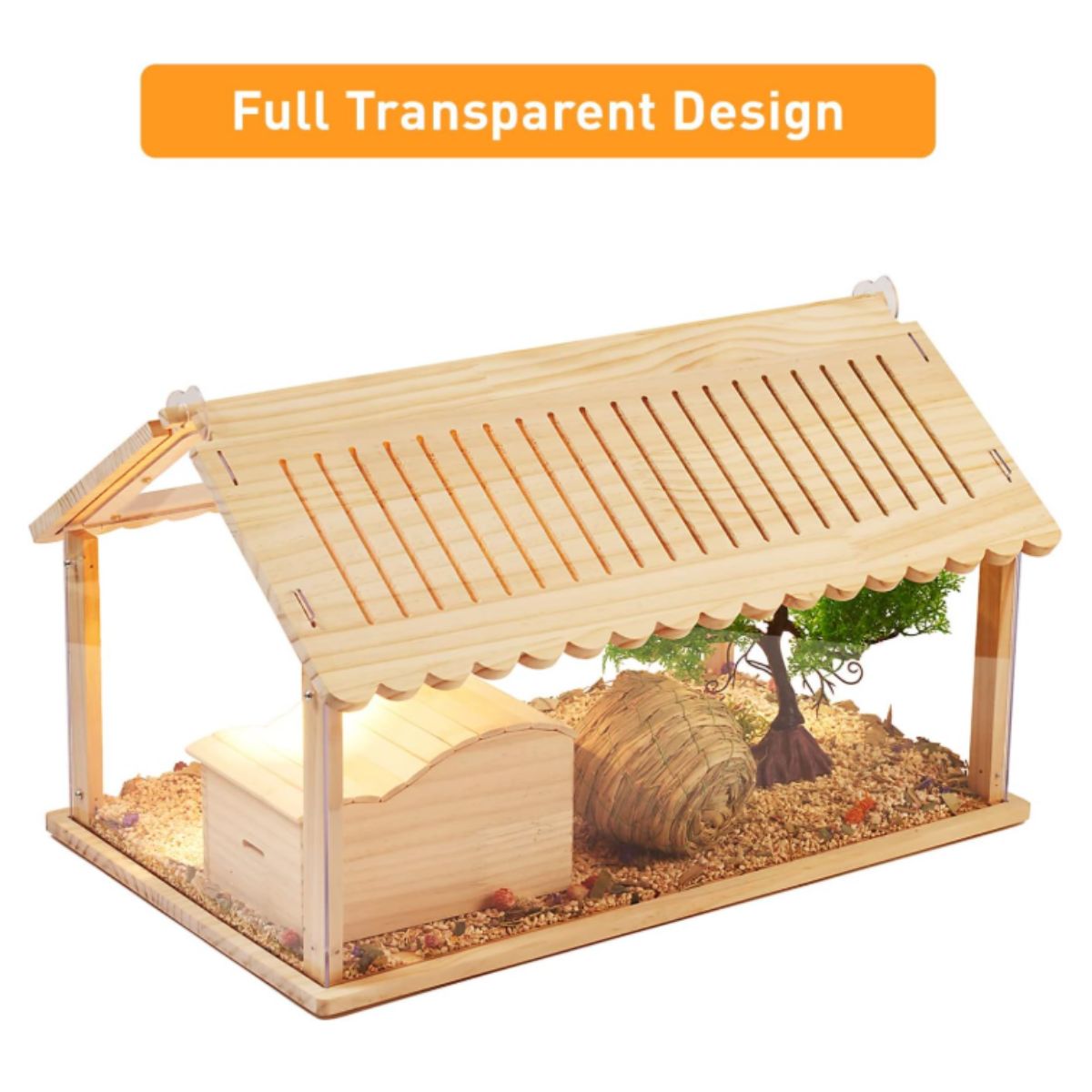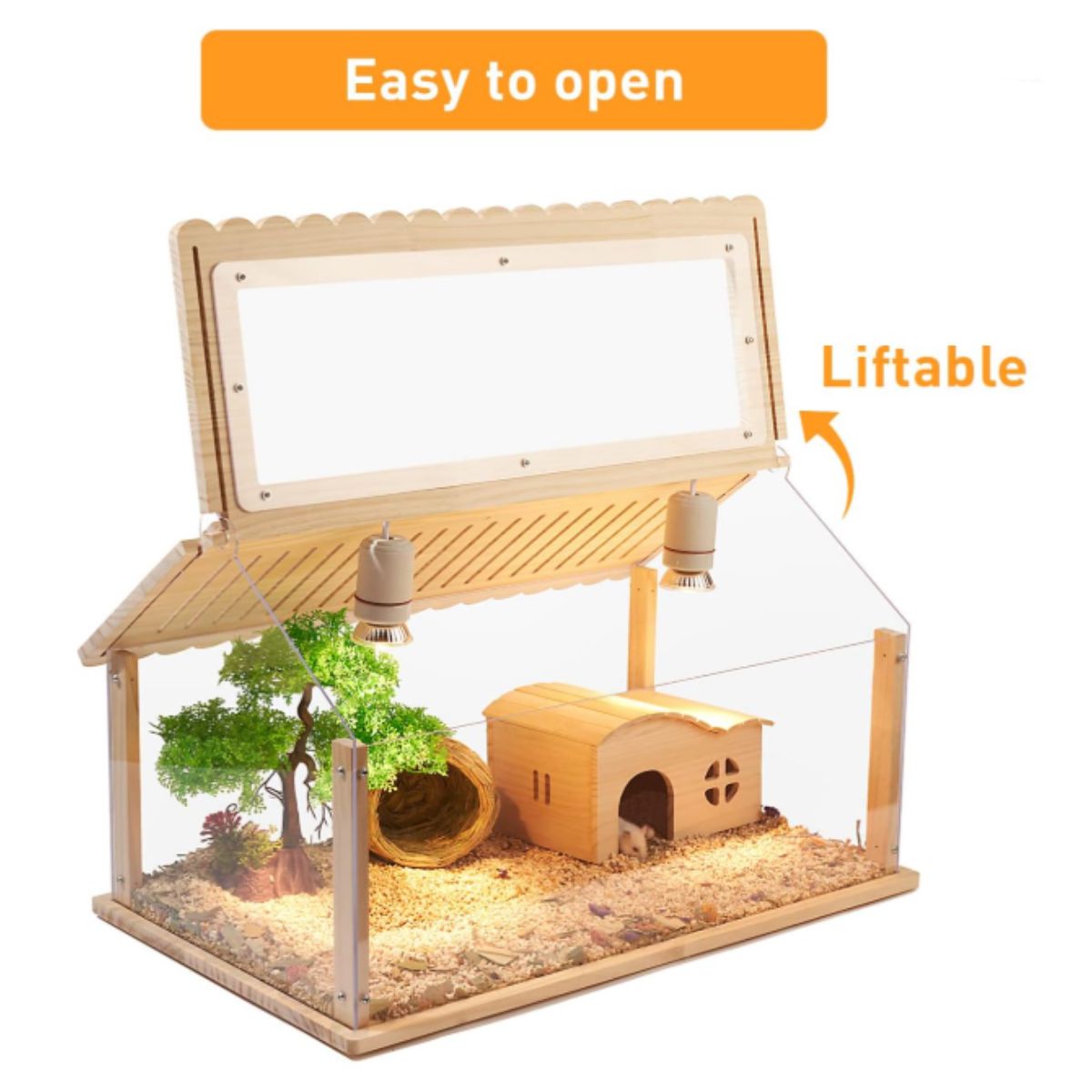 The transparent hamster cage by LURIVA offers a clear acrylic design for easy pet viewing. It’s spacious and perfect for small animals indoors.