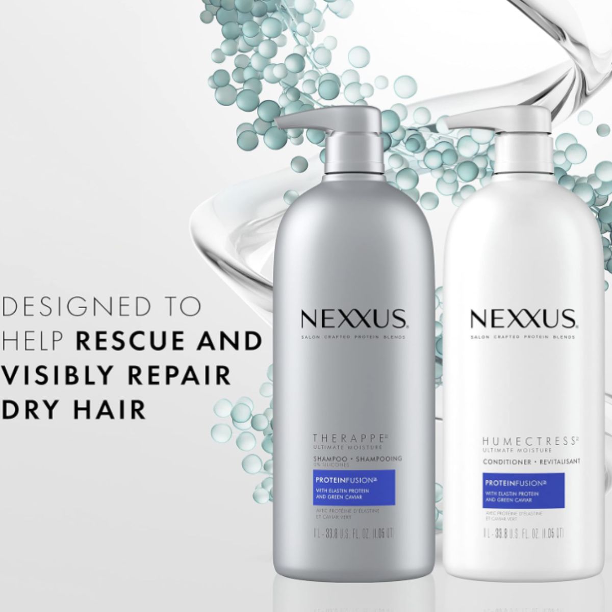 Ultimate moisture shampoo by Nexxus revitalizes dry hair with a ProteinFusion blend for moisture and suppleness. Perfect for daily hair care.
