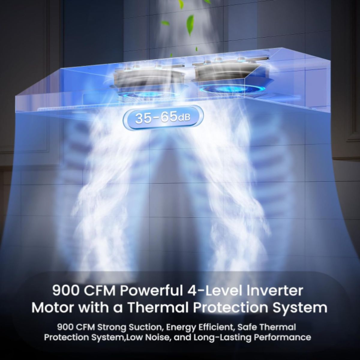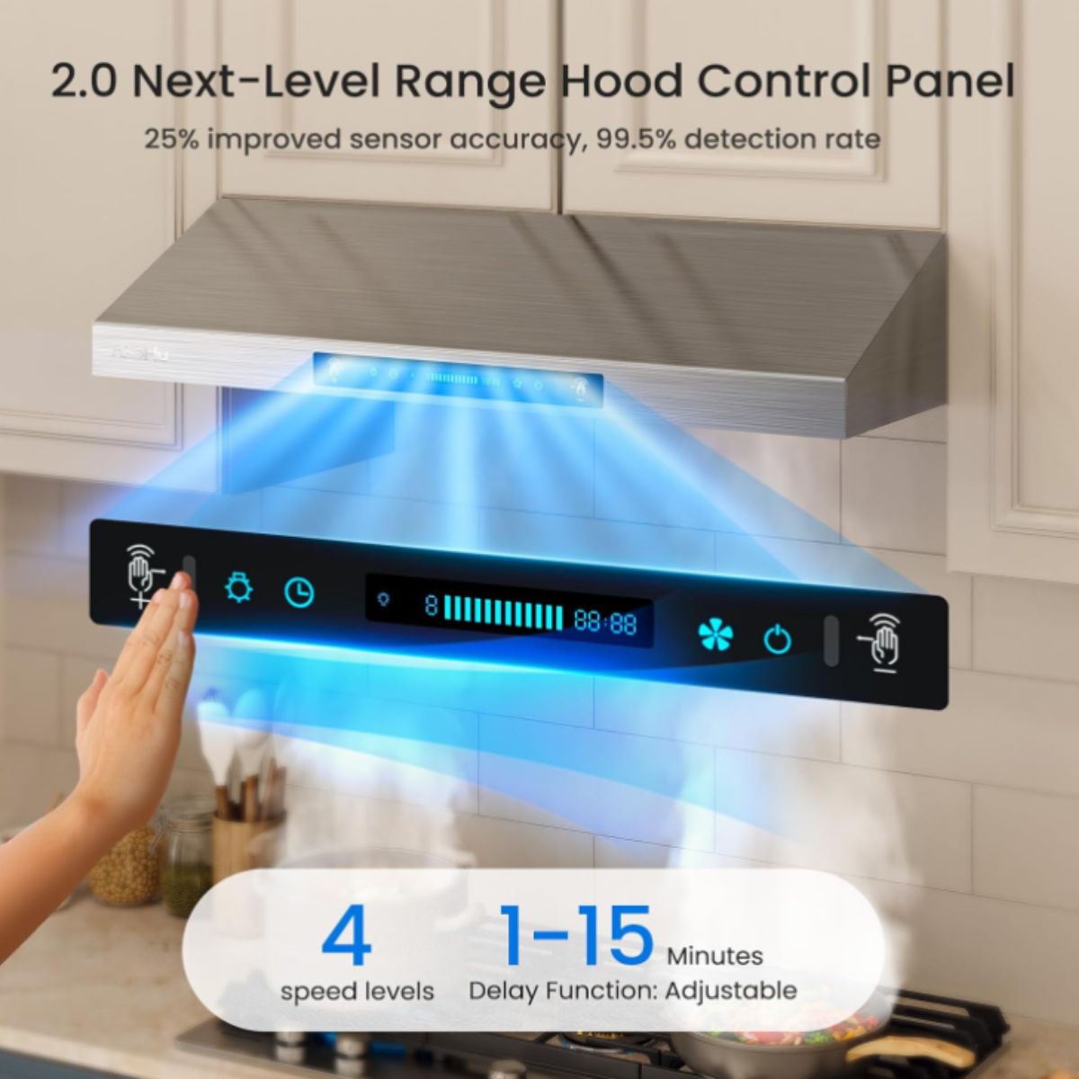 The under cabinet range hood by Hisohu offers powerful 900 CFM ventilation with 4 speed gesture sensing control. Perfect for keeping your kitchen fresh and smoke-free.