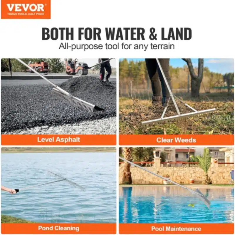 Meet your new favorite VEVOR Landscape Rake, 36″ Head Aluminum Landscape Lake Weed Rake with 75″ Long Handle, for Loosening Soil, Lawn Care, Weeding Lake, Garden, Pond. Crafted with ergonomic materials and crystal-clear design, this Vevor solution delivers reliable results that exceed expectations. enhances your productivity with every use.
