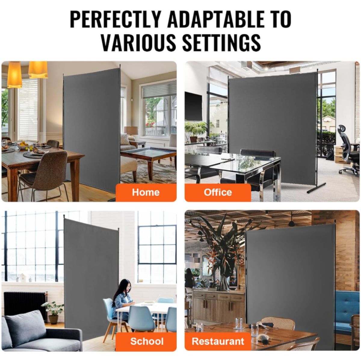 VEVOR Room Divider, Single Panel Room Divider, 6FT Privacy Screen Indoor, Partition Divider for Room Separation, Freestanding Room Divider Panel for Office, Bedroom, Grey