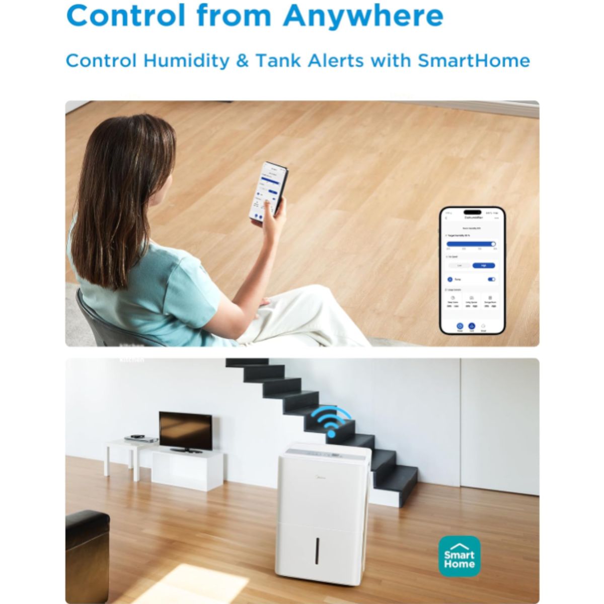 The wifi enabled dehumidifier by Midea is perfect for basements and medium to large rooms. It offers efficient moisture control and a reusable air filter.