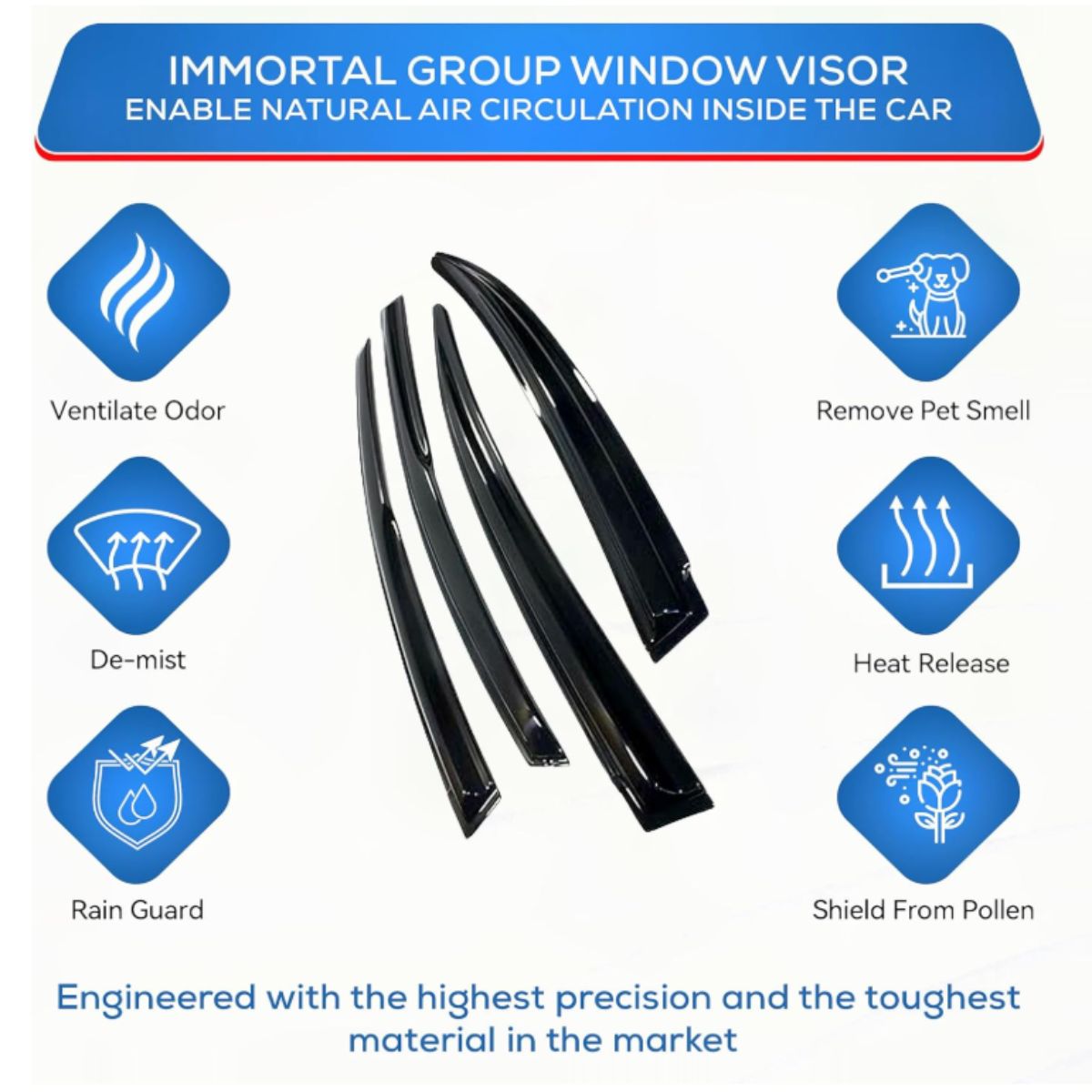 Window visor from Immortal Group fits Mercedes-Benz E-Class Sedan 2010-2016. Protect your car from rain and wind while allowing fresh air in comfortably.