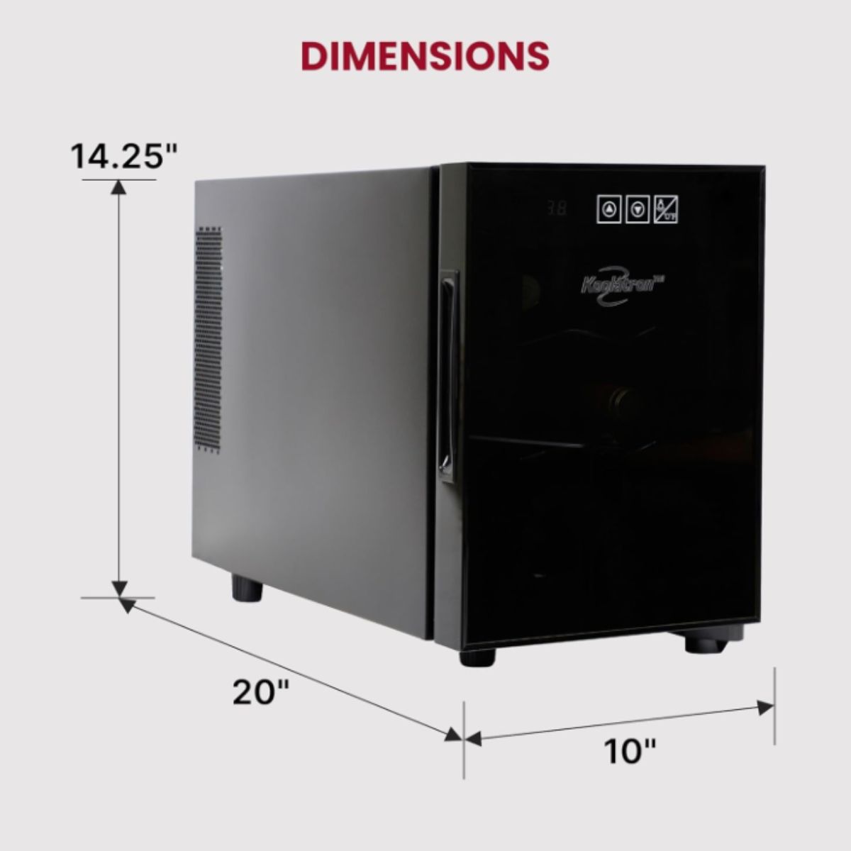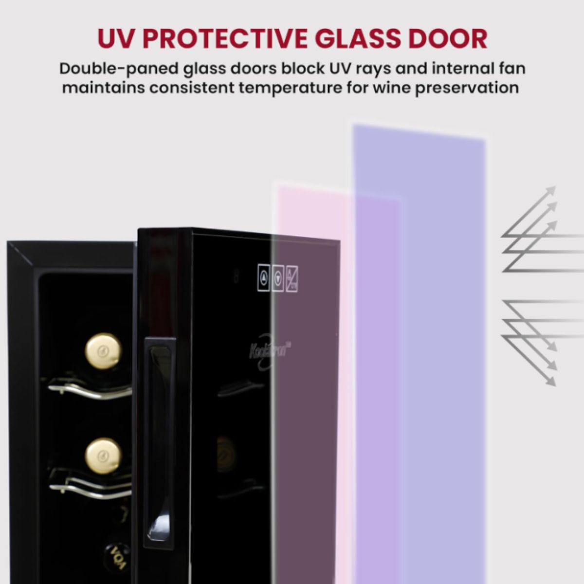 The wine fridge by Koolatron offers stylish storage for up to 6 bottles. This freestanding cooler features a double paned glass door to protect your wines.
