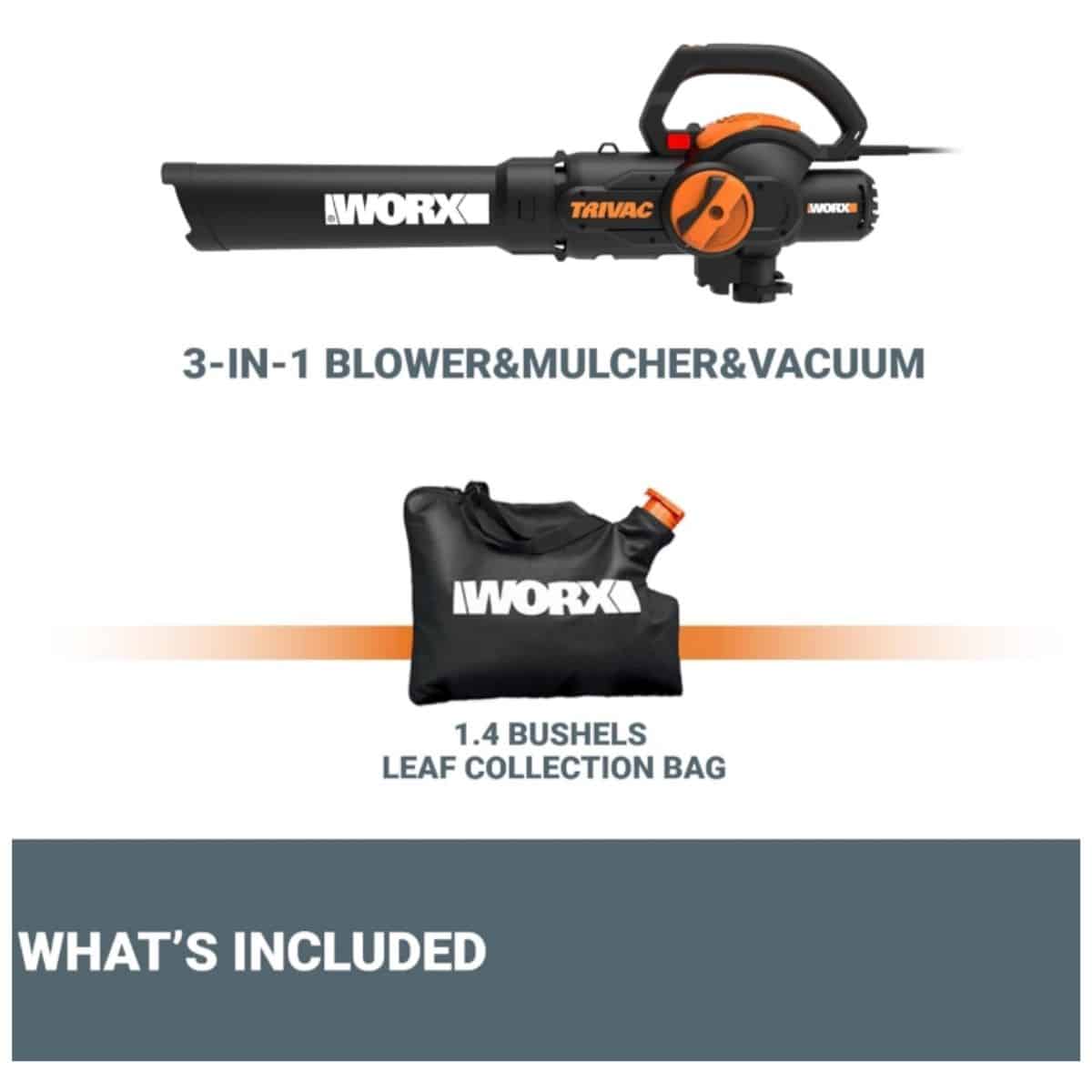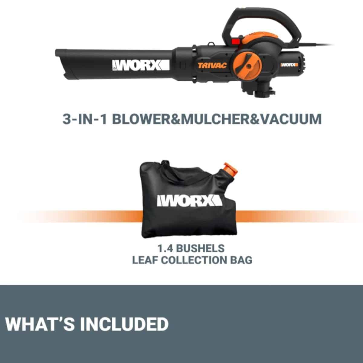 WORX 12 Amp Trivac 3-in-1 Electric Leaf Blower/Mulcher/Yard Vacuum – WG512